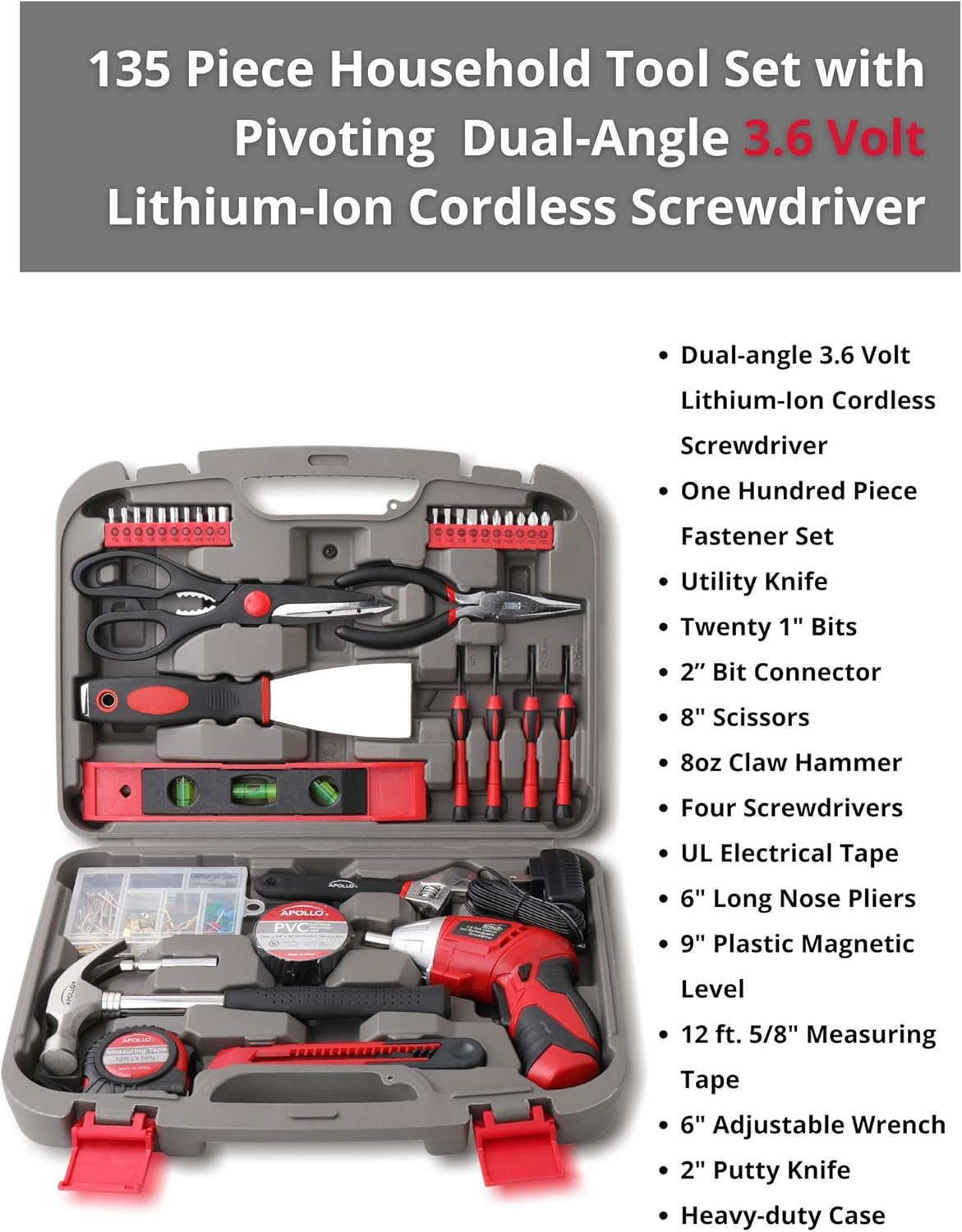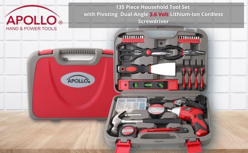 Apollo Tools Original 39 Piece General Household Tool Set in Toolbox Storage Case with Essential Hand Tools for Everyday H...