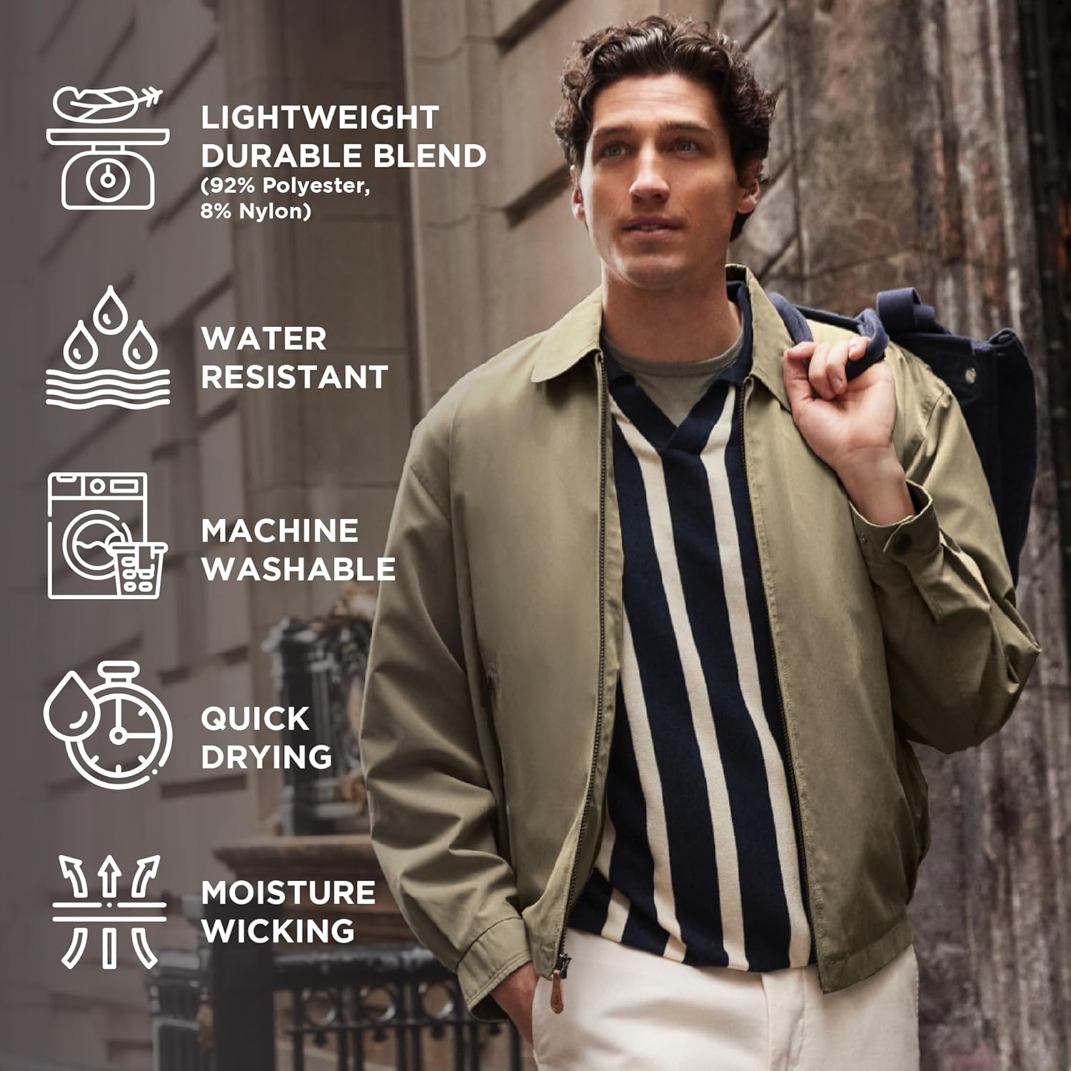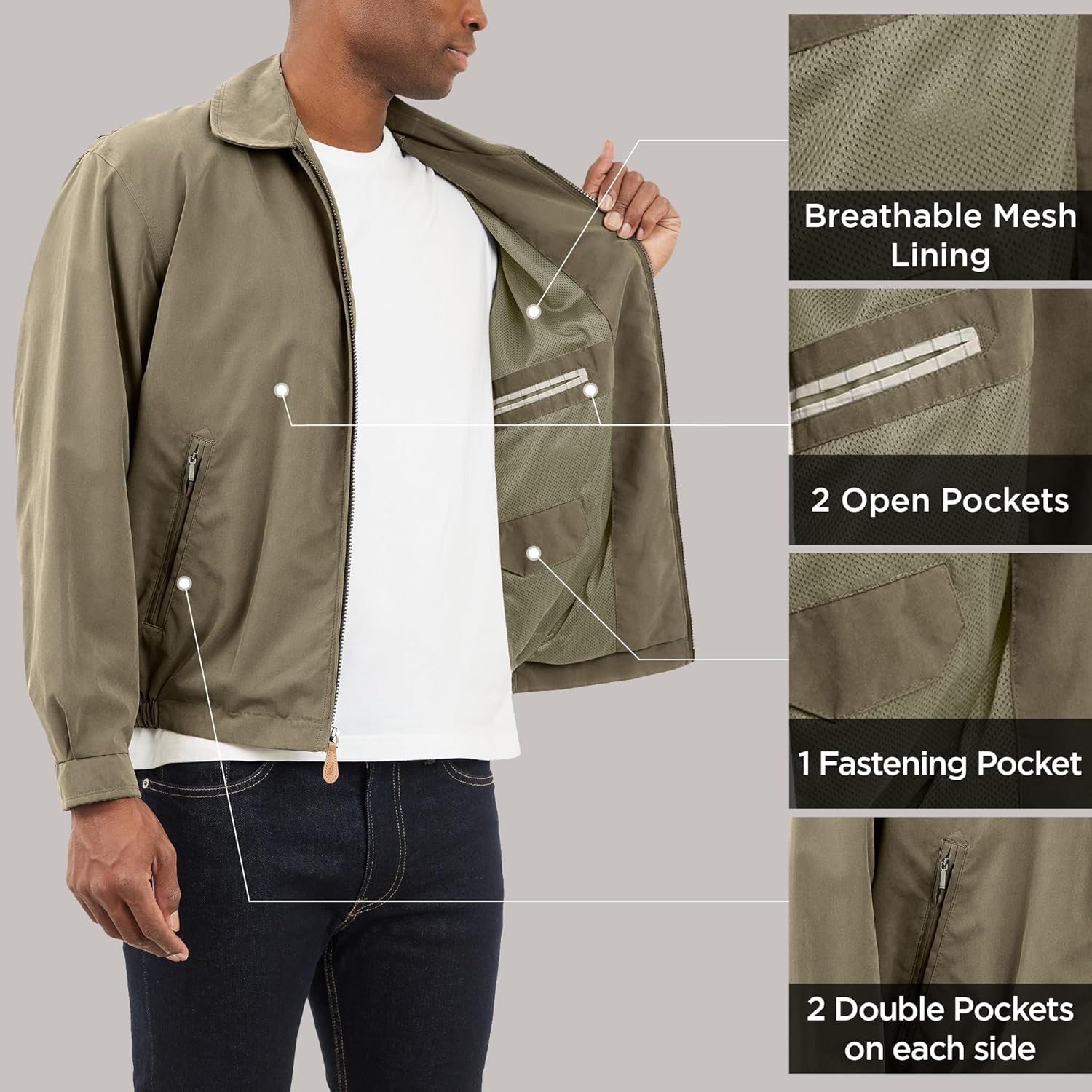 Wind and Water Resistant: A great year-round zippered jacket for men. Your fall, winter, spring and summer jacket that provides protection from wind, rain, and chilly nights. This sturdy build men's lightweight jacket ensures long-lasting wear.