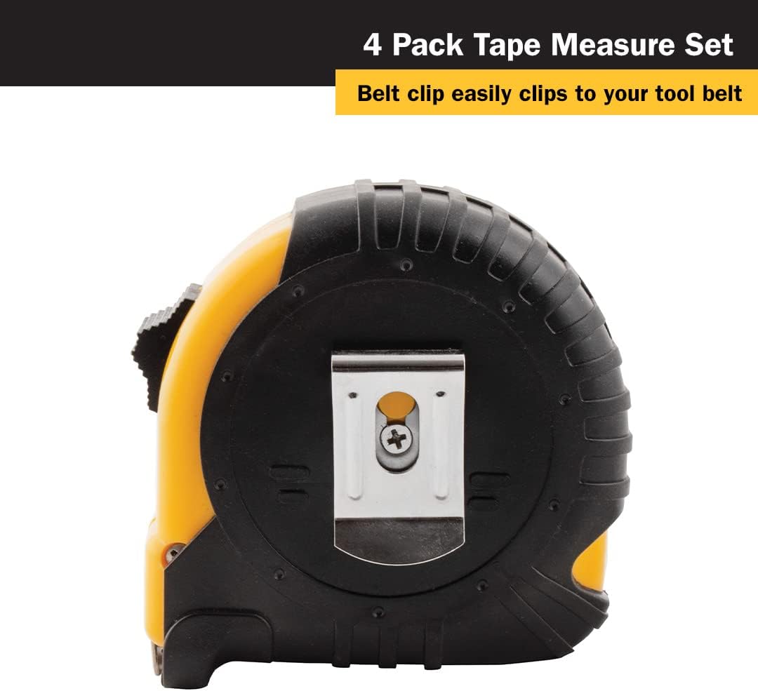 Includes (4) tape measures, lengths: 12,16, 25, and 33-Feet