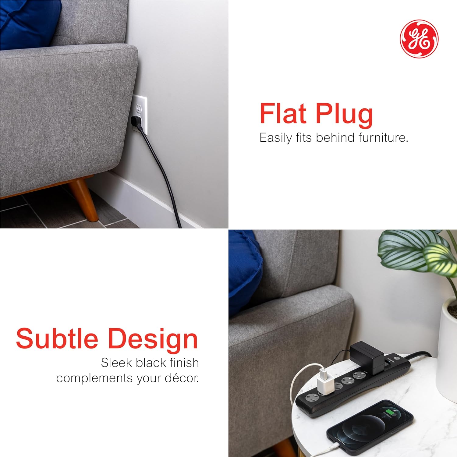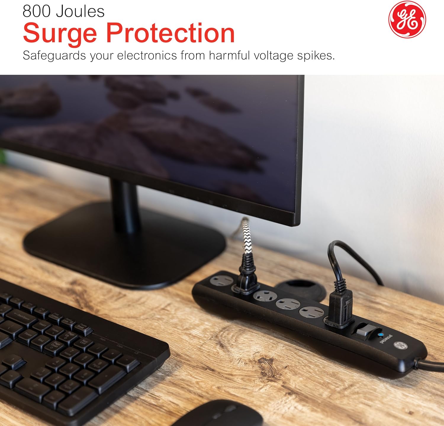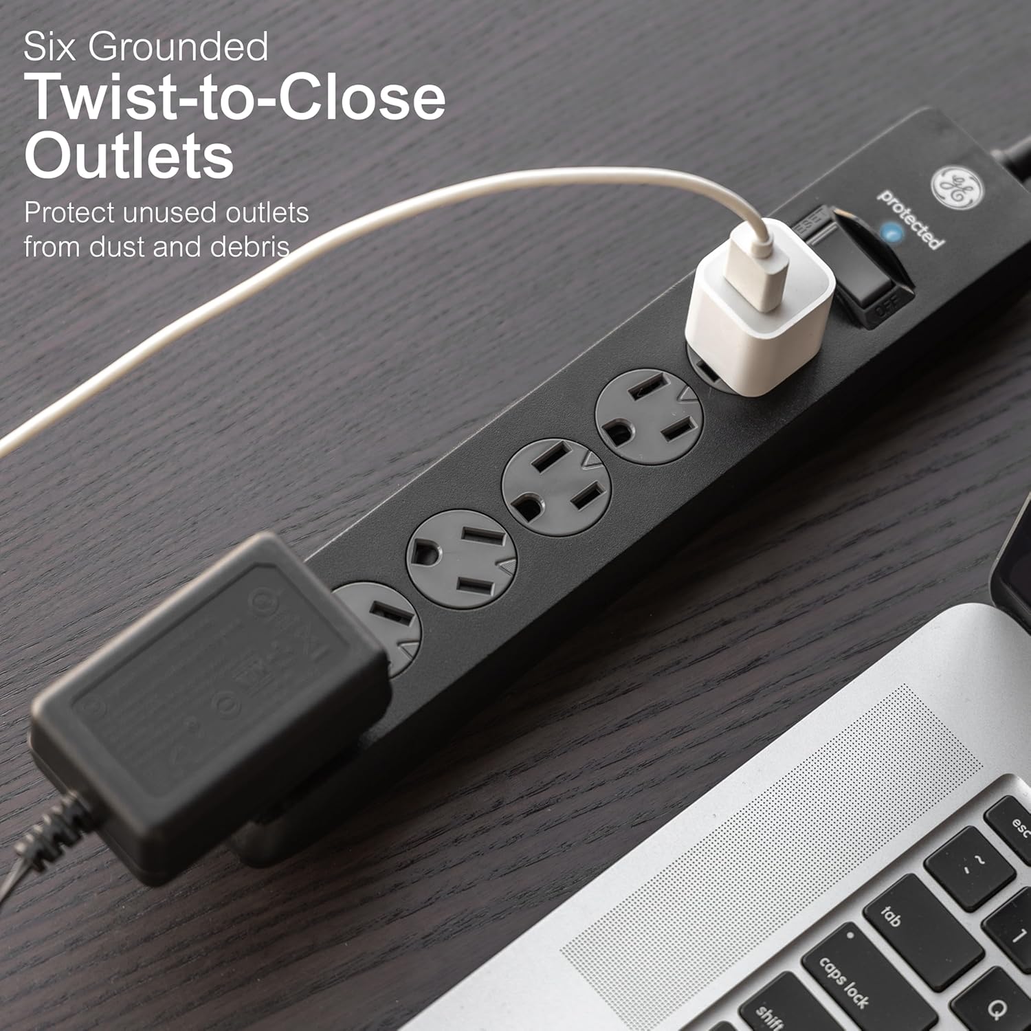 GE 6-Outlet Surge Protector, 10 Ft Extension Cord, Power Strip, 800 Joules, Flat Plug, Twist-to-Close Safety Covers, ETL L...