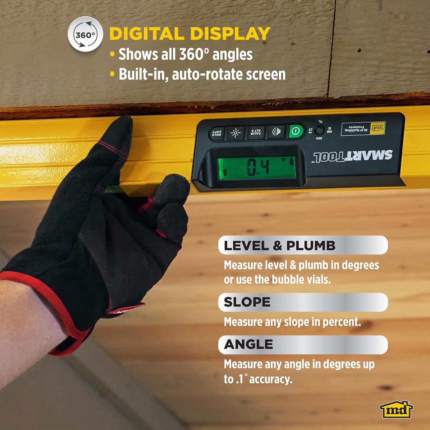 M-D Building Products 92515 Gen3 SmartTool 24-Inch Digital Level with Carrying Case, Yellow