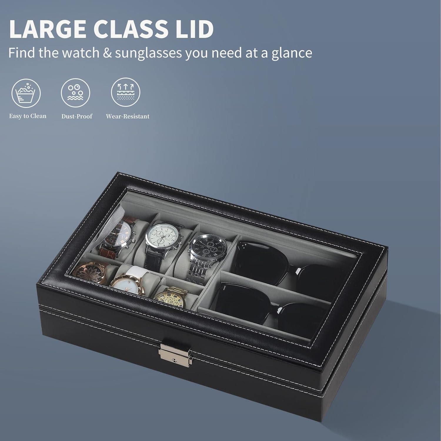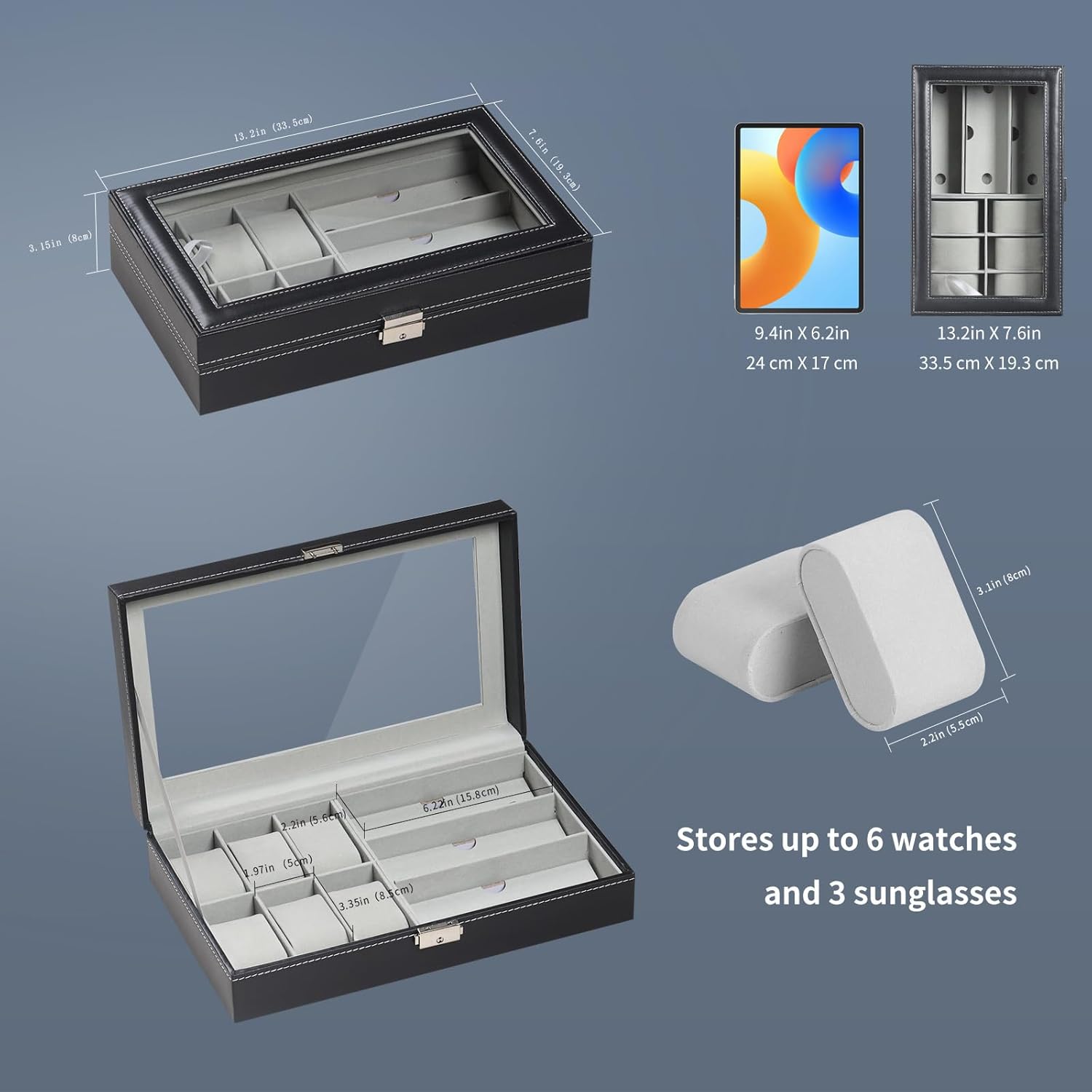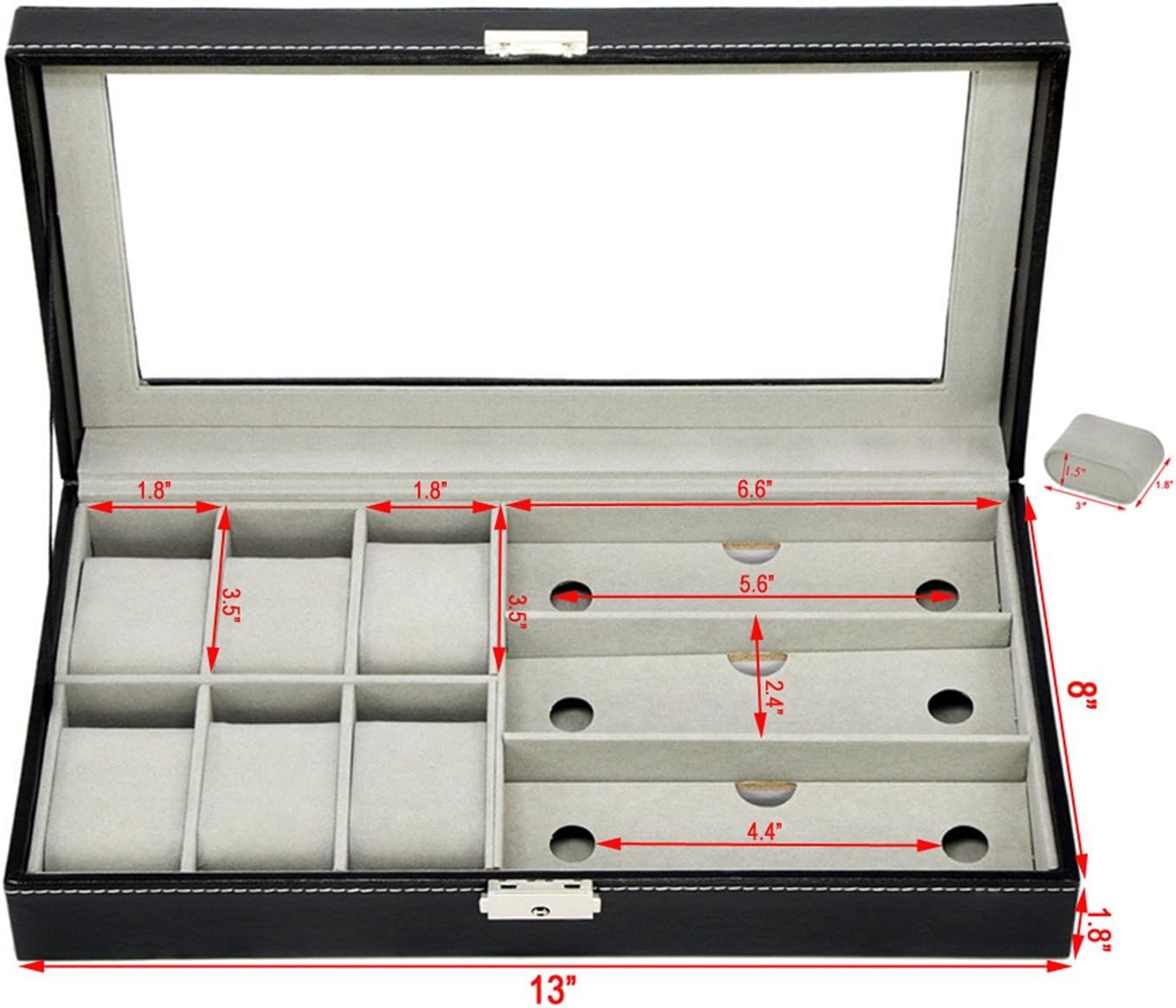 Clear glass top gives you a open view and you can find your favorite treasure in seconds with this unique watch and glasses and jewelry box.Perfect for home and business use, and a wonderful gift idea