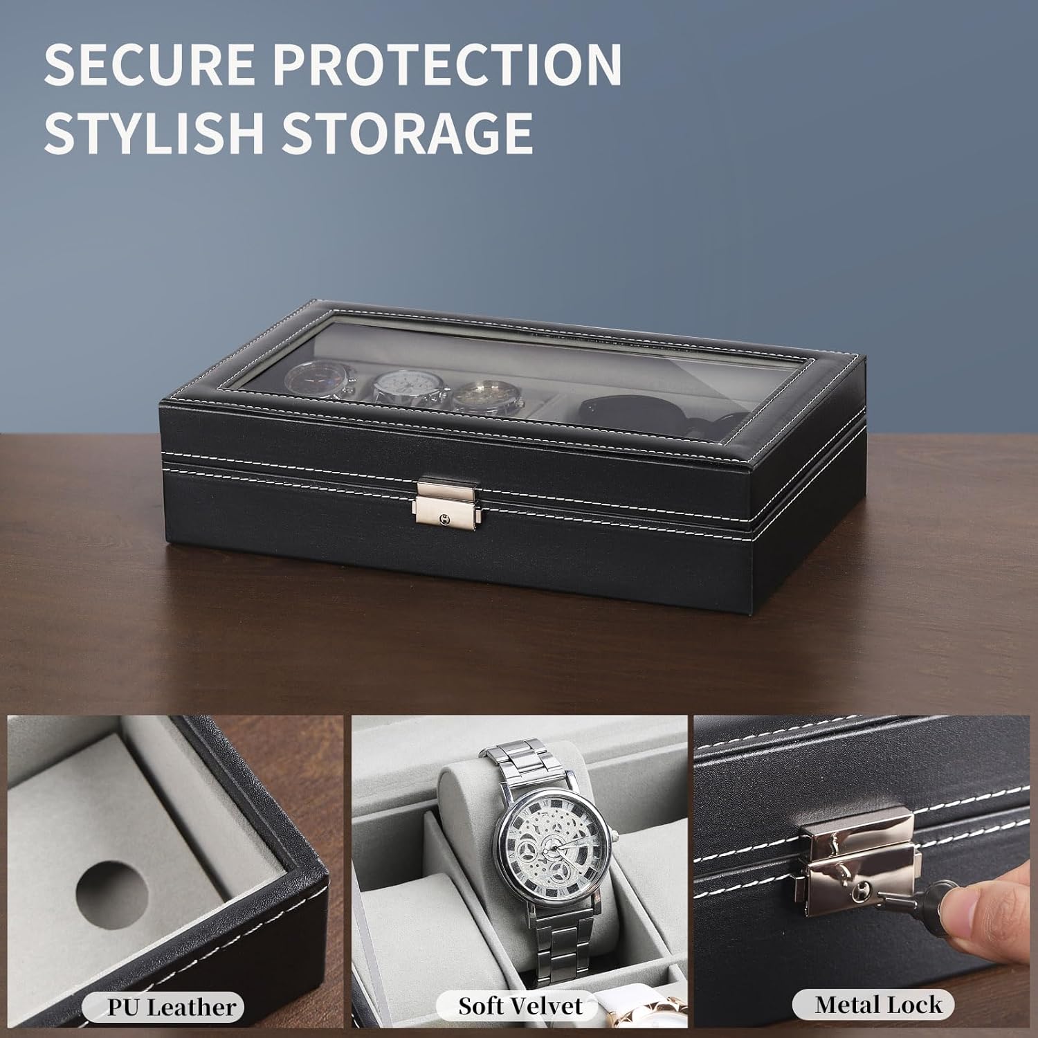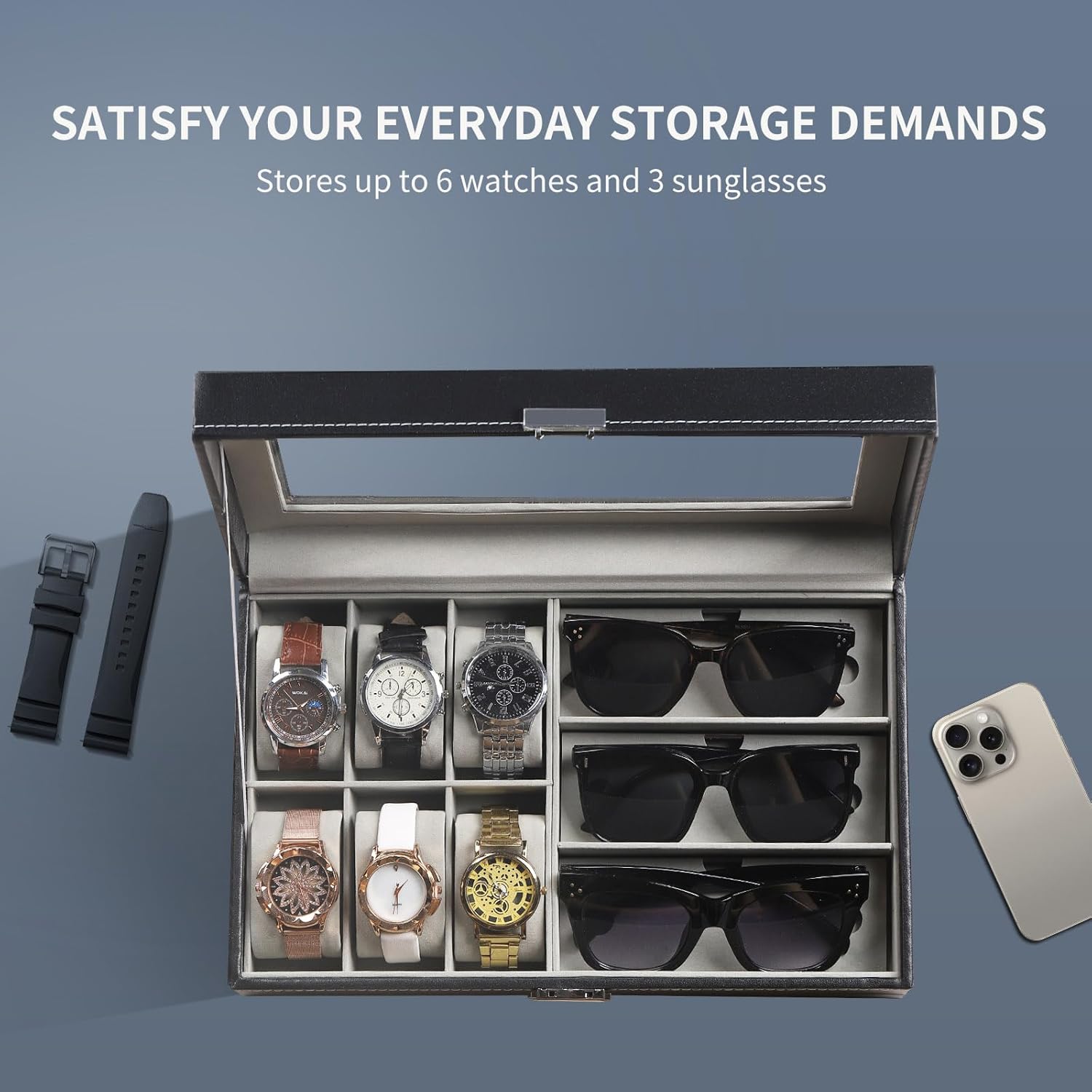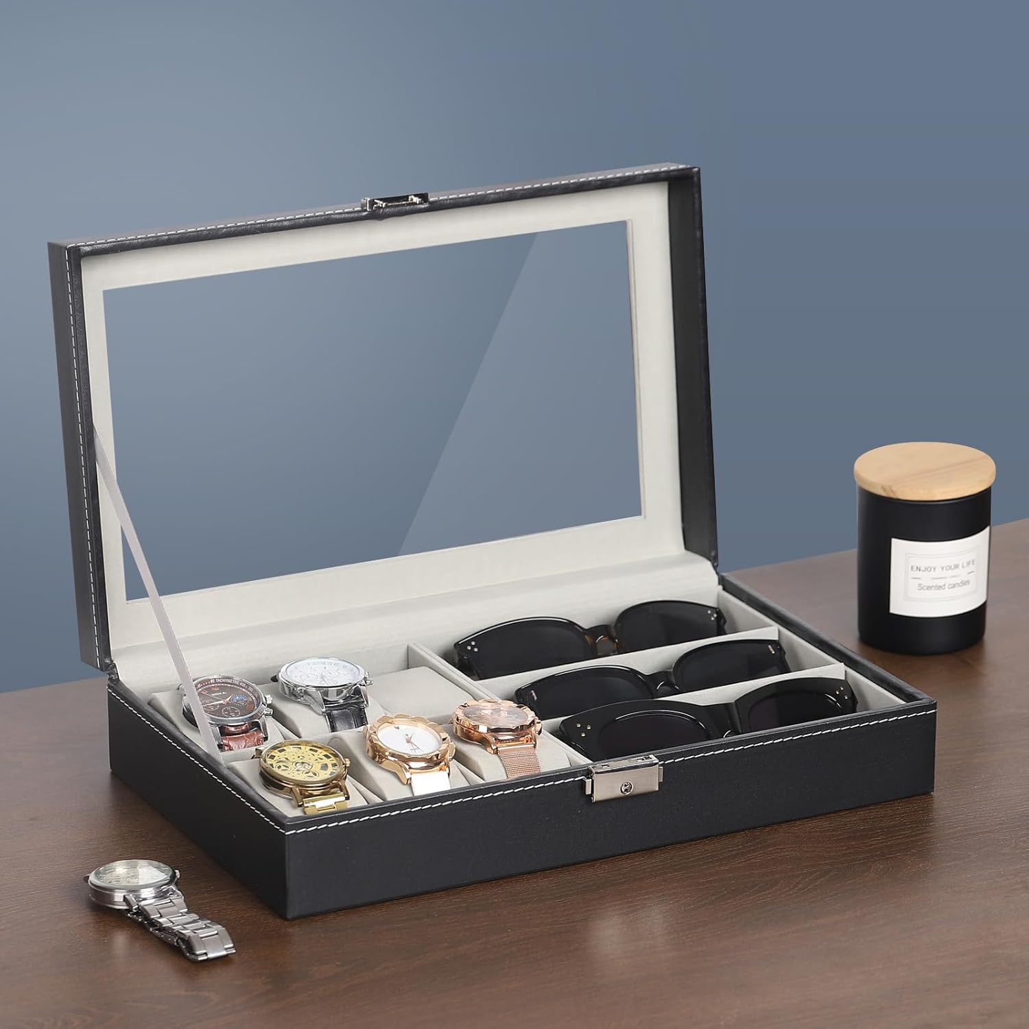 Clear glass top gives you a open view and you can find your favorite treasure in seconds with this unique watch and glasses and jewelry box.Perfect for home and business use, and a wonderful gift idea