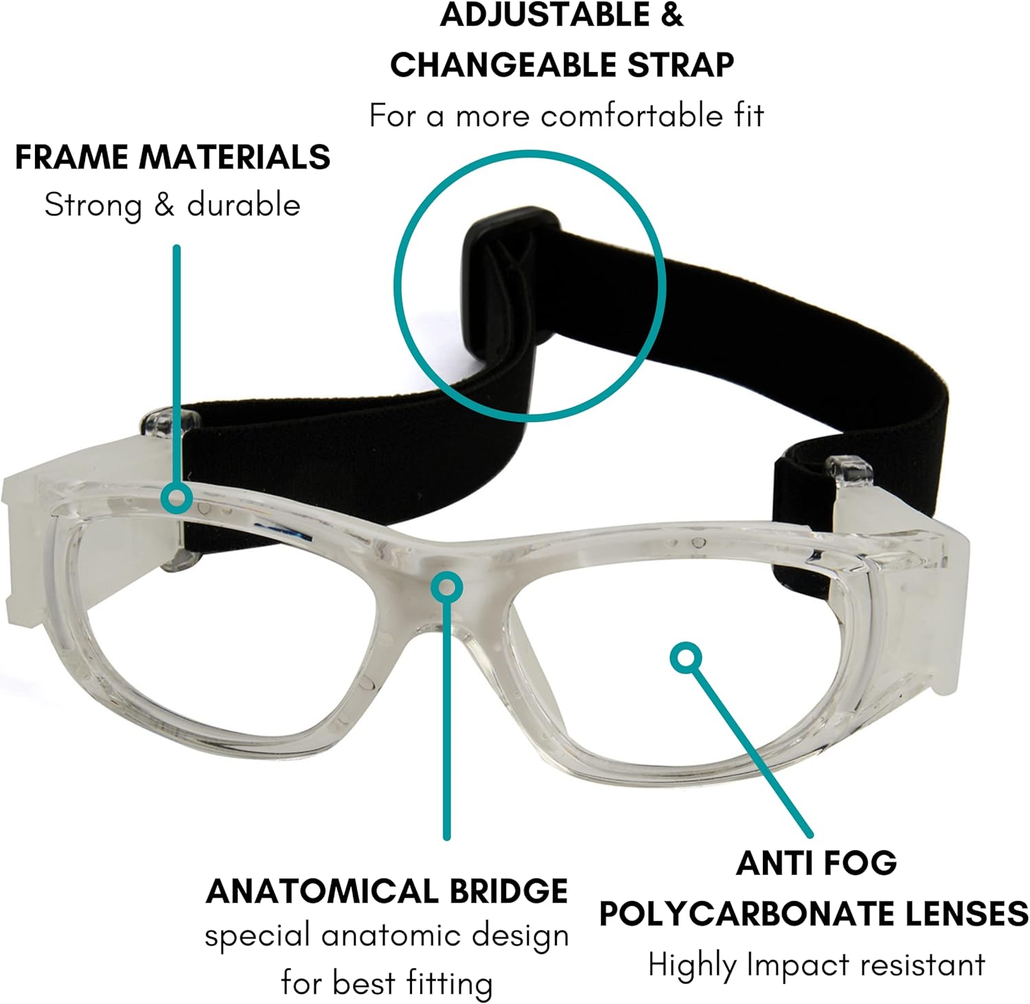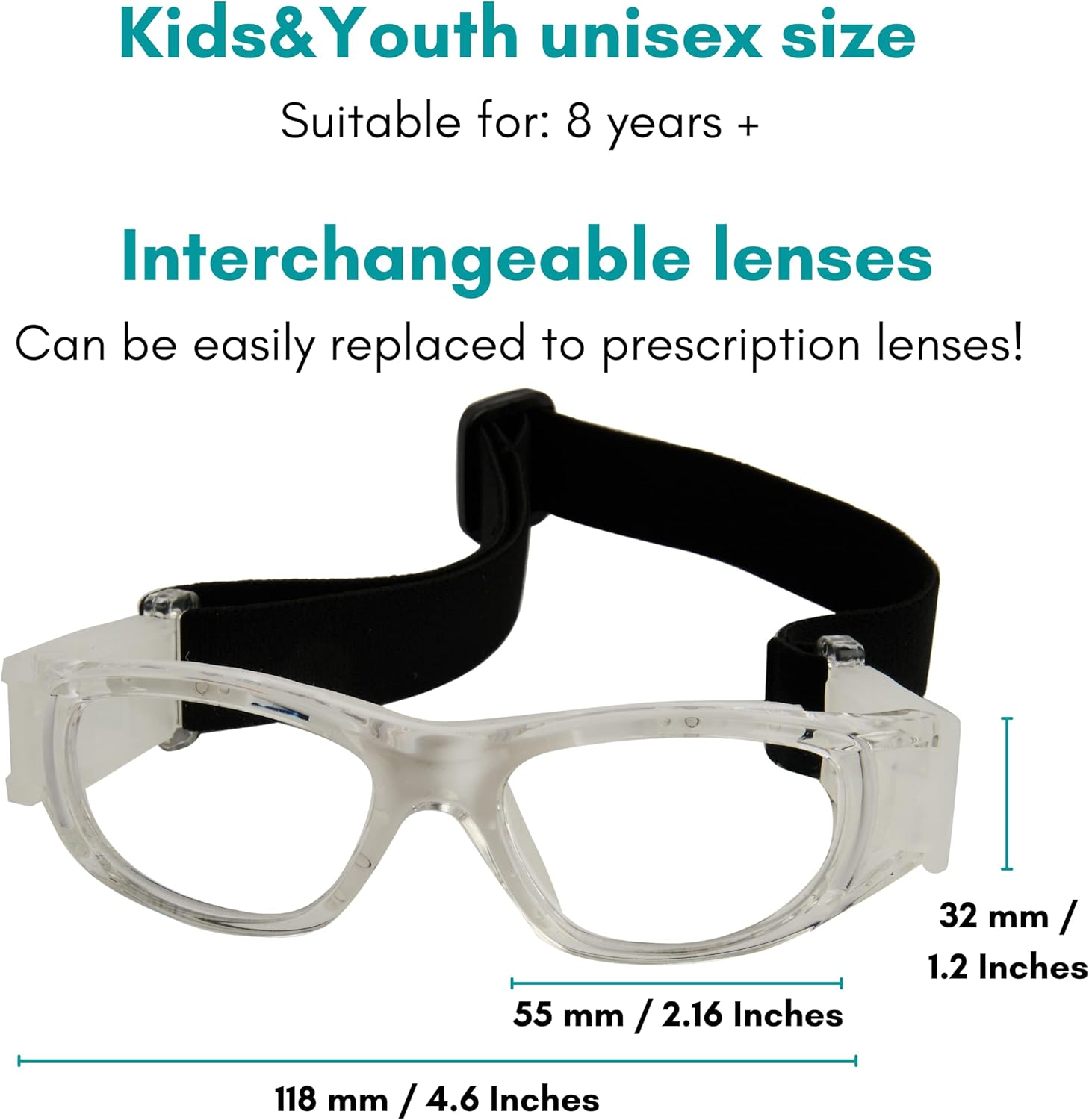 BLUE CUT Safety Basketball Goggles For Kids for Outdoor Sports Activities Anti Fog Replaceable to Prescription Lenses