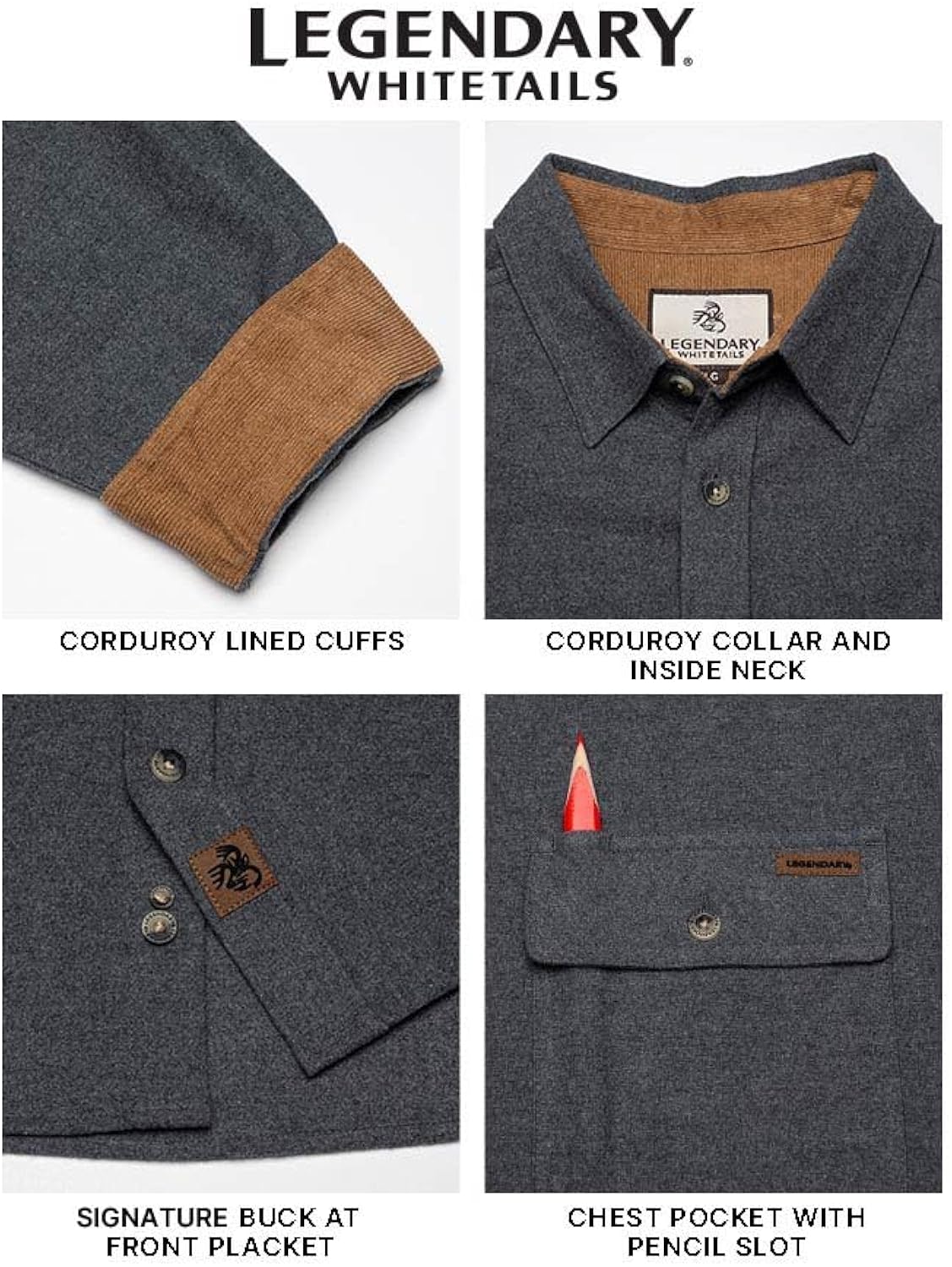 Legendary Whitetails Men's Buck Camp Flannel, Long Sleeve Plaid Button Down Casual Shirt, Corduroy Cuffs