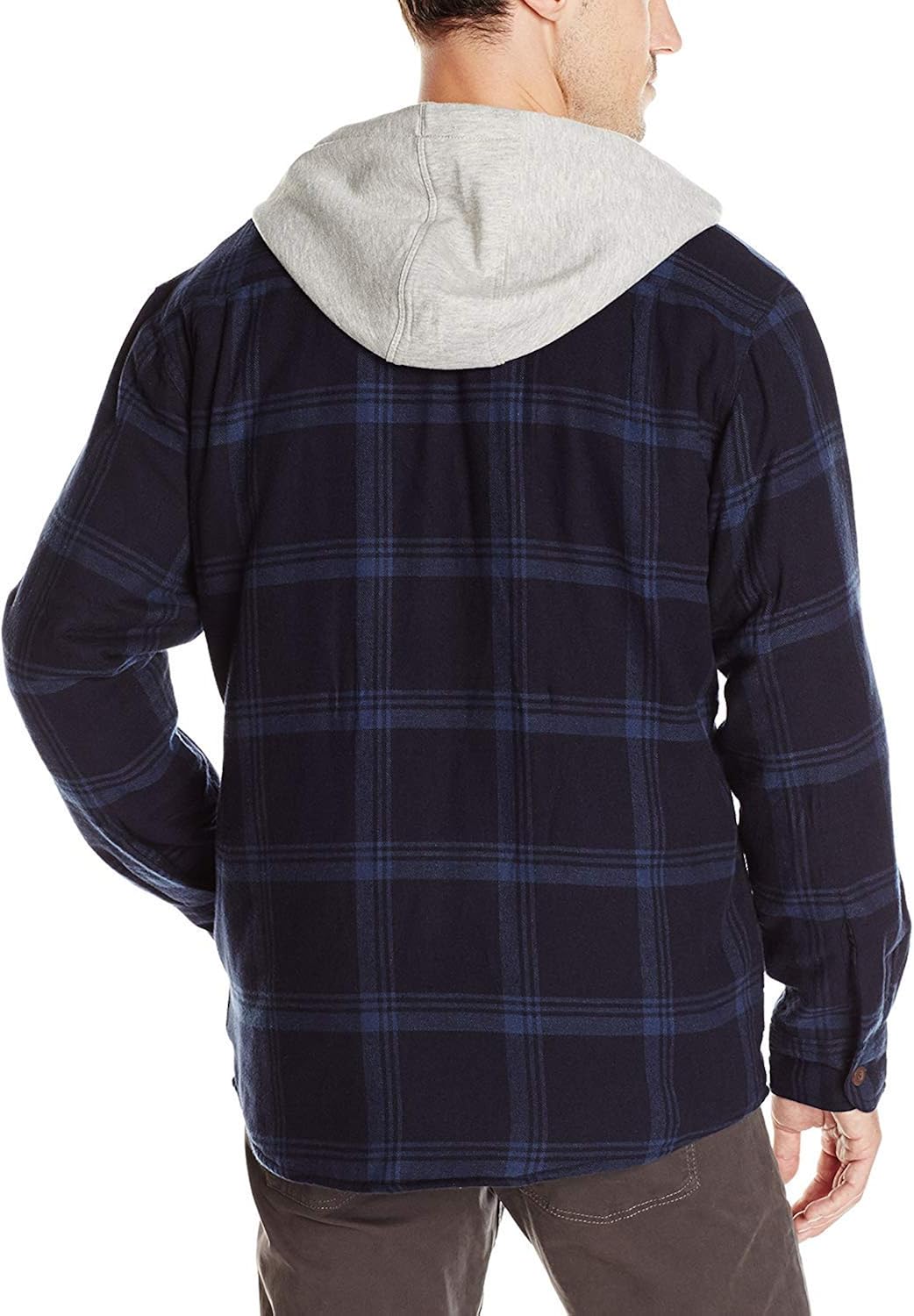 Wrangler Authentics Men's Long Sleeve Quilted Lined Flannel Shirt Jacket with Hood