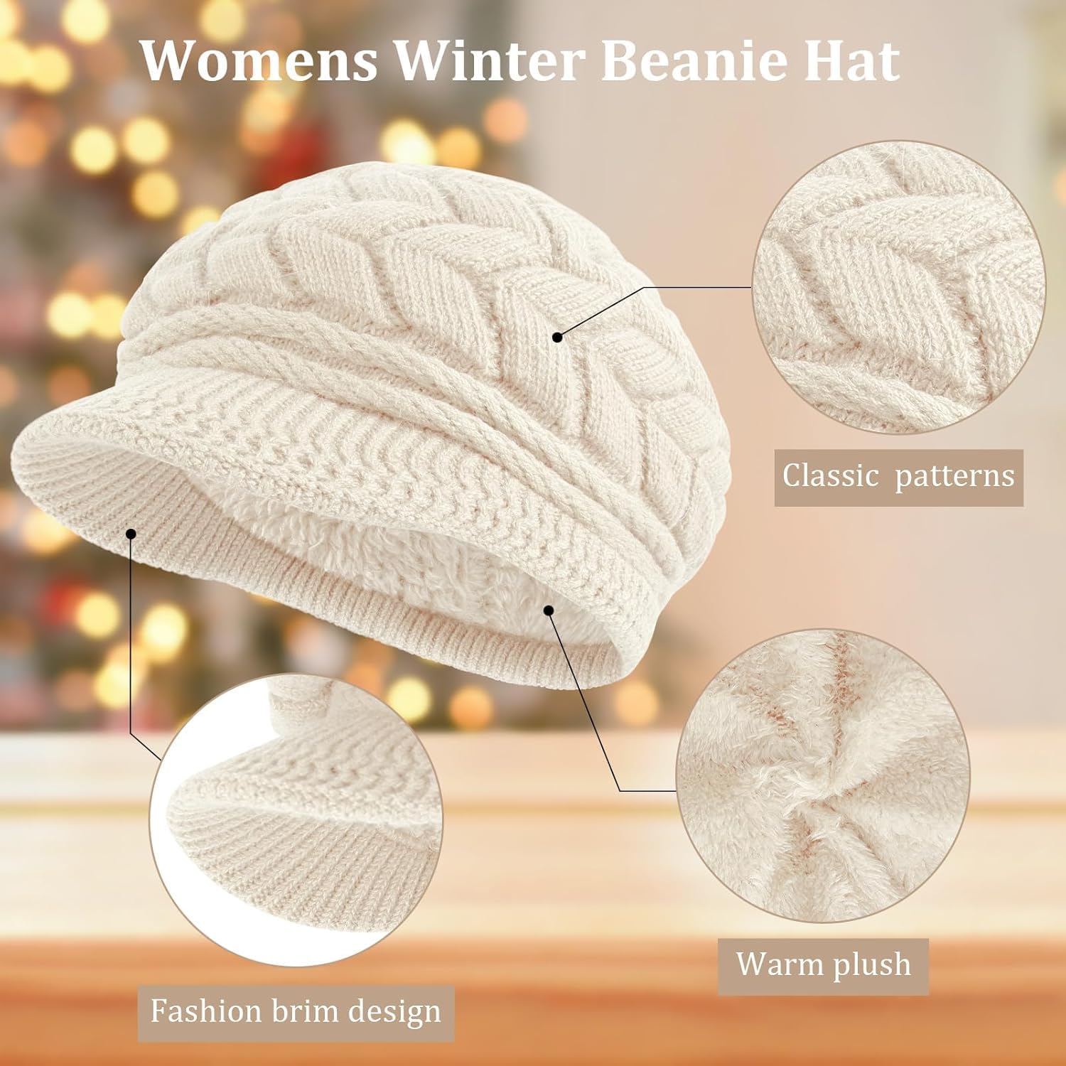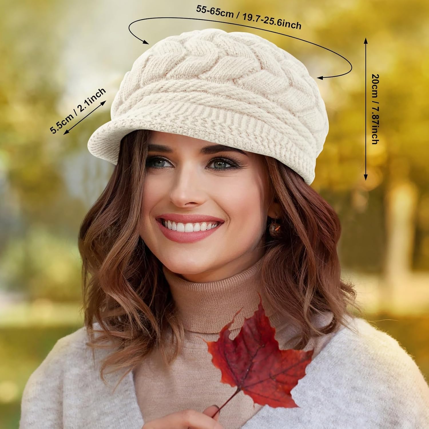 Free Size: One size fits most; This womens winter hats are very soft and stretchable, can be stretched and suitable for most women ; Come with womens beanie hats with visor; There is always one fits your winter