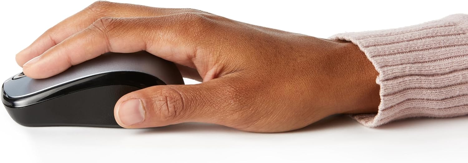 Wireless mouse in Silver for easily navigating a computer interface; click, scroll, and more