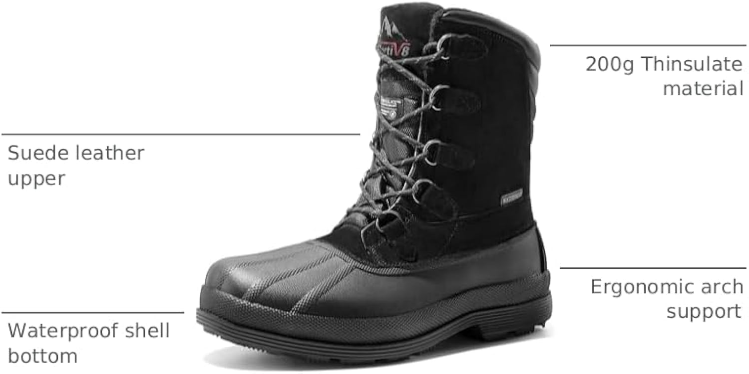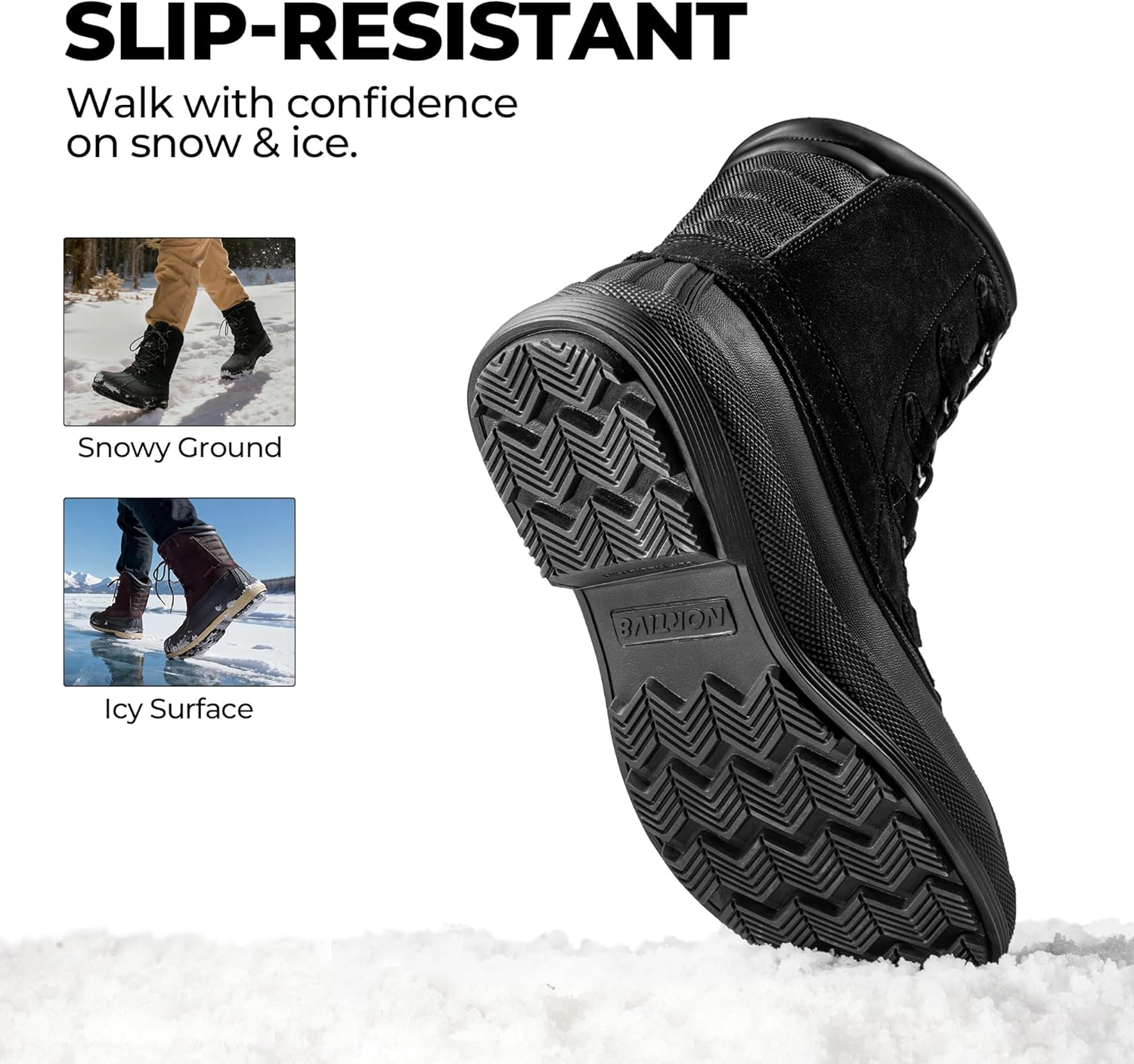 Premium Material: Winter snow boots are made of suede leather upper and waterproof shell bottom unit, which forms seam-sealed water-resistant construction to keep out the wet elements for a drier feet environment.