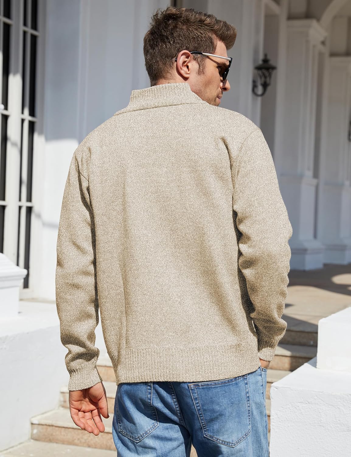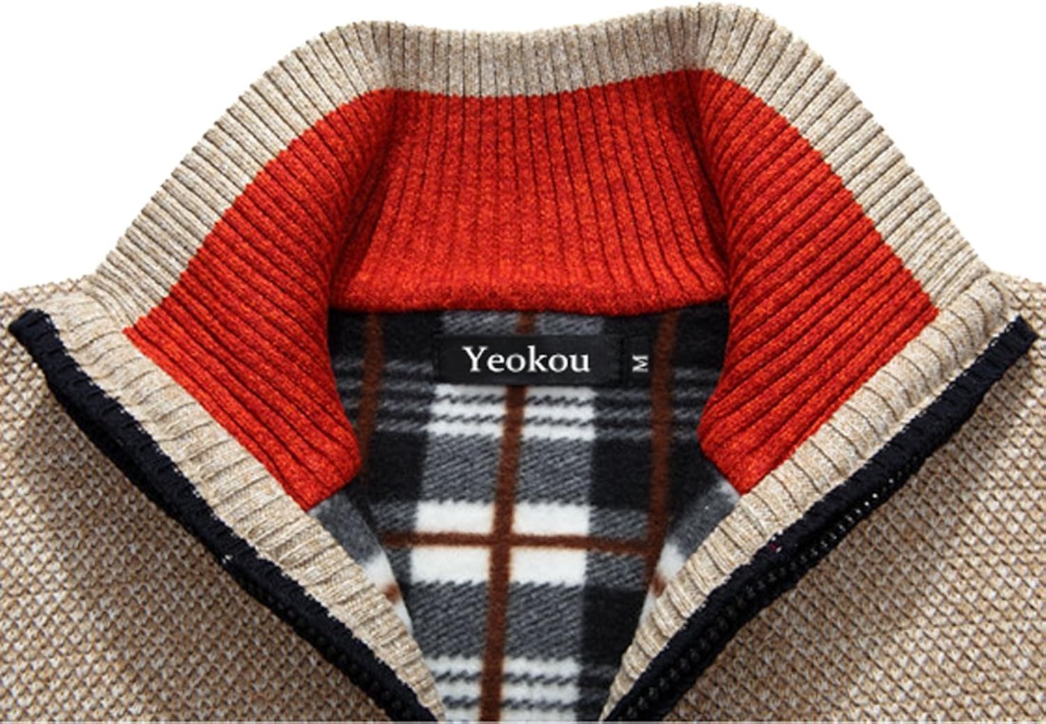 Yeokou Men's Casual Slim Full Zip Thick Knitted Cardigan Sweaters with Pockets