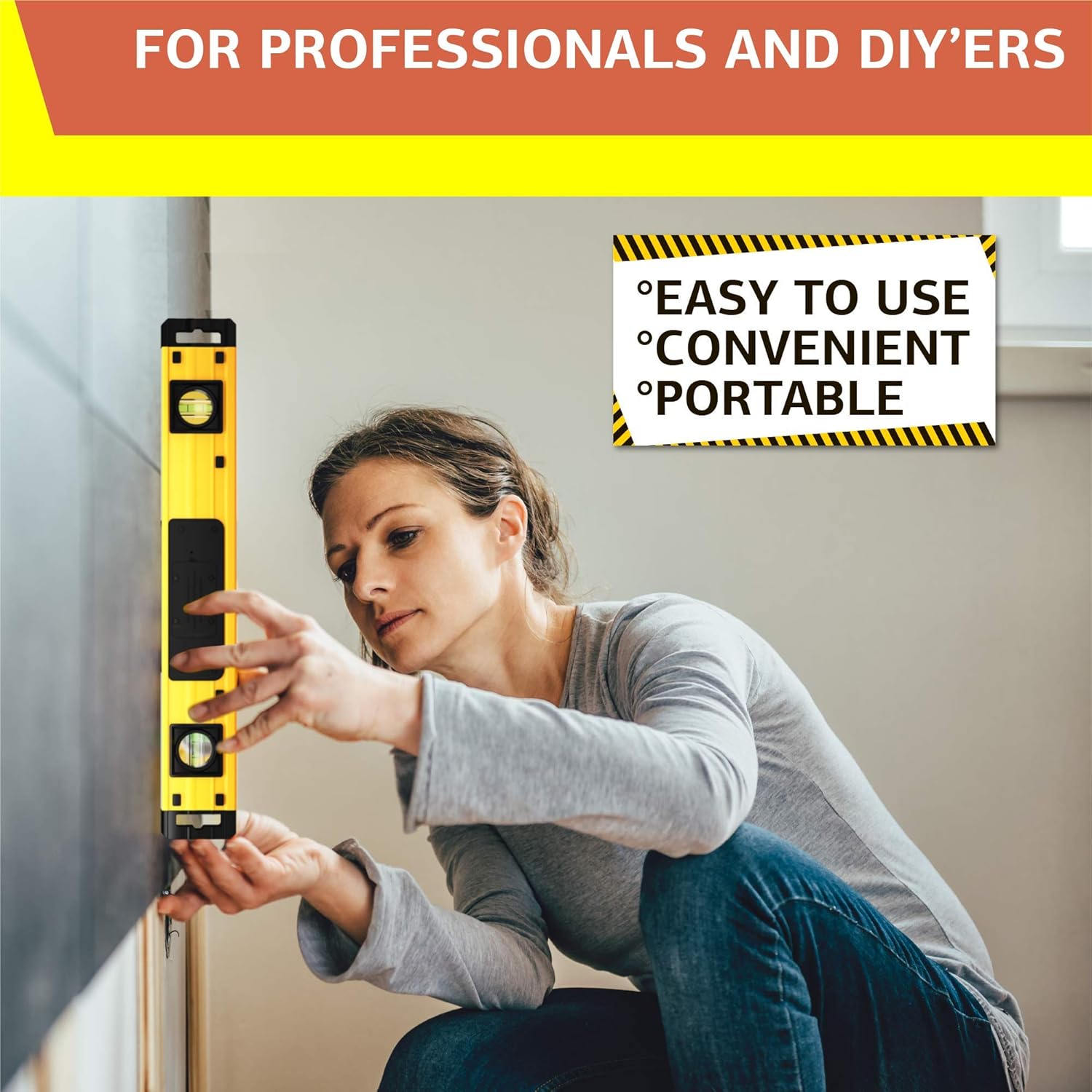 This versatile level 18 inch tool includes 2 AAA batteries and a durable case for easy storage and portability.