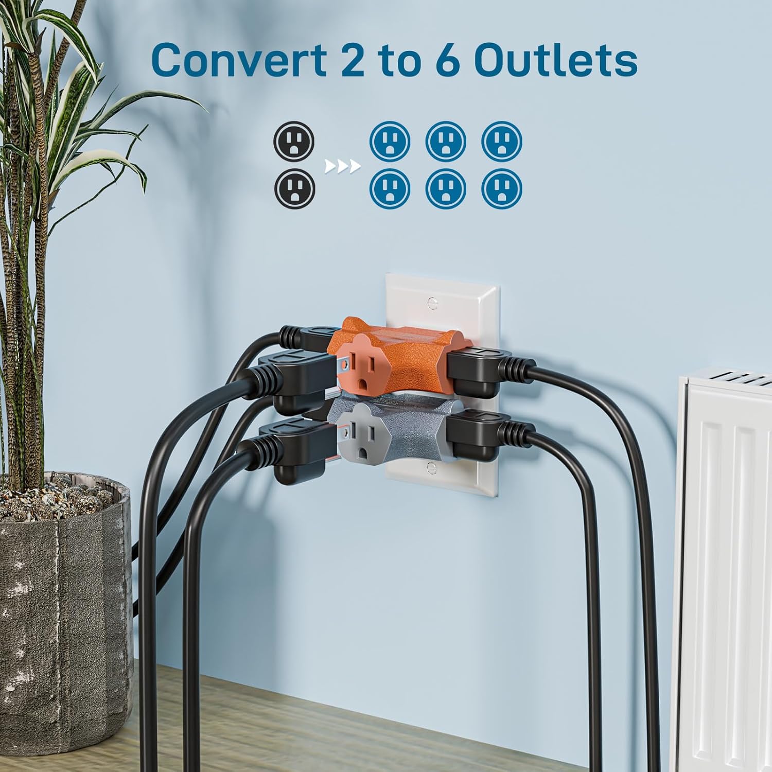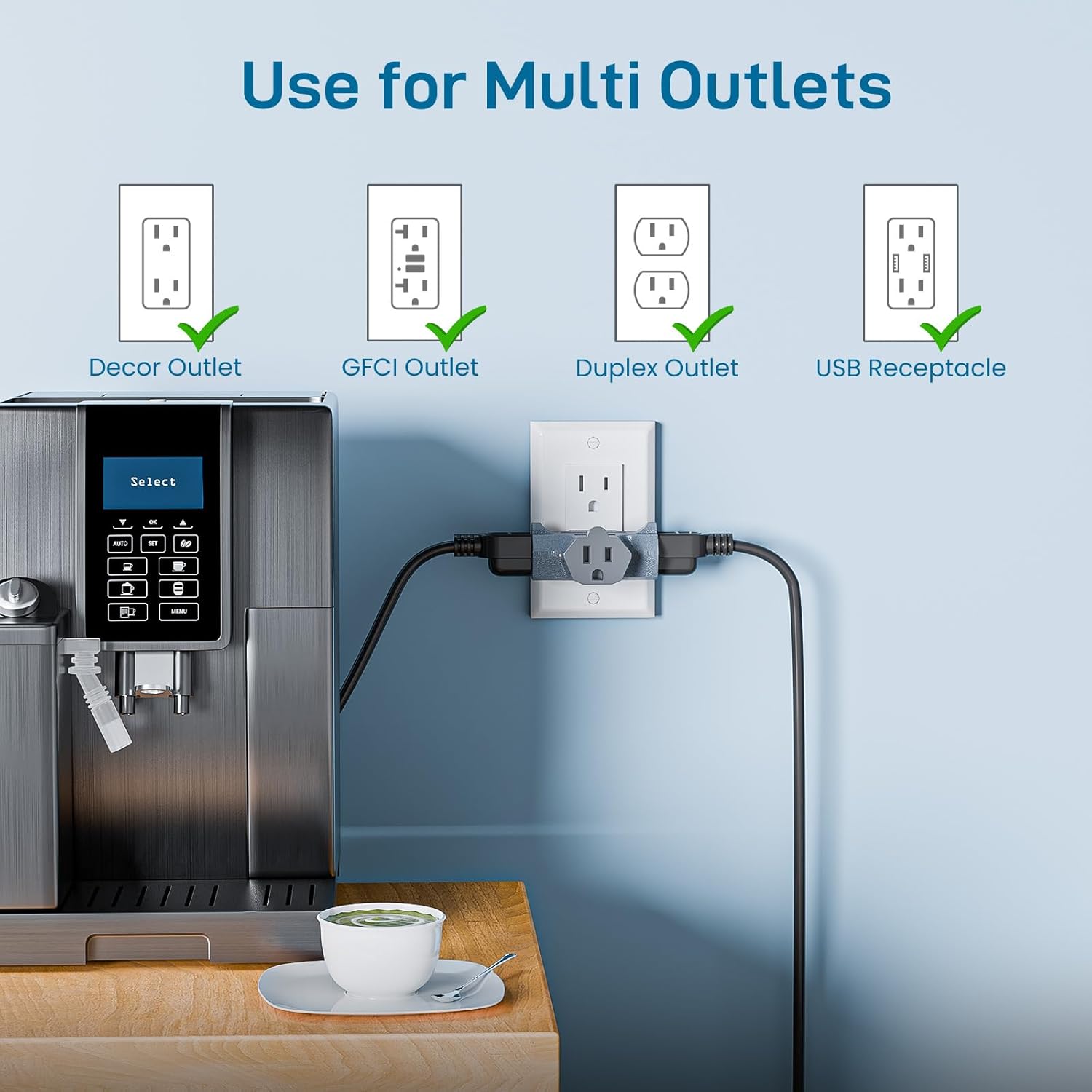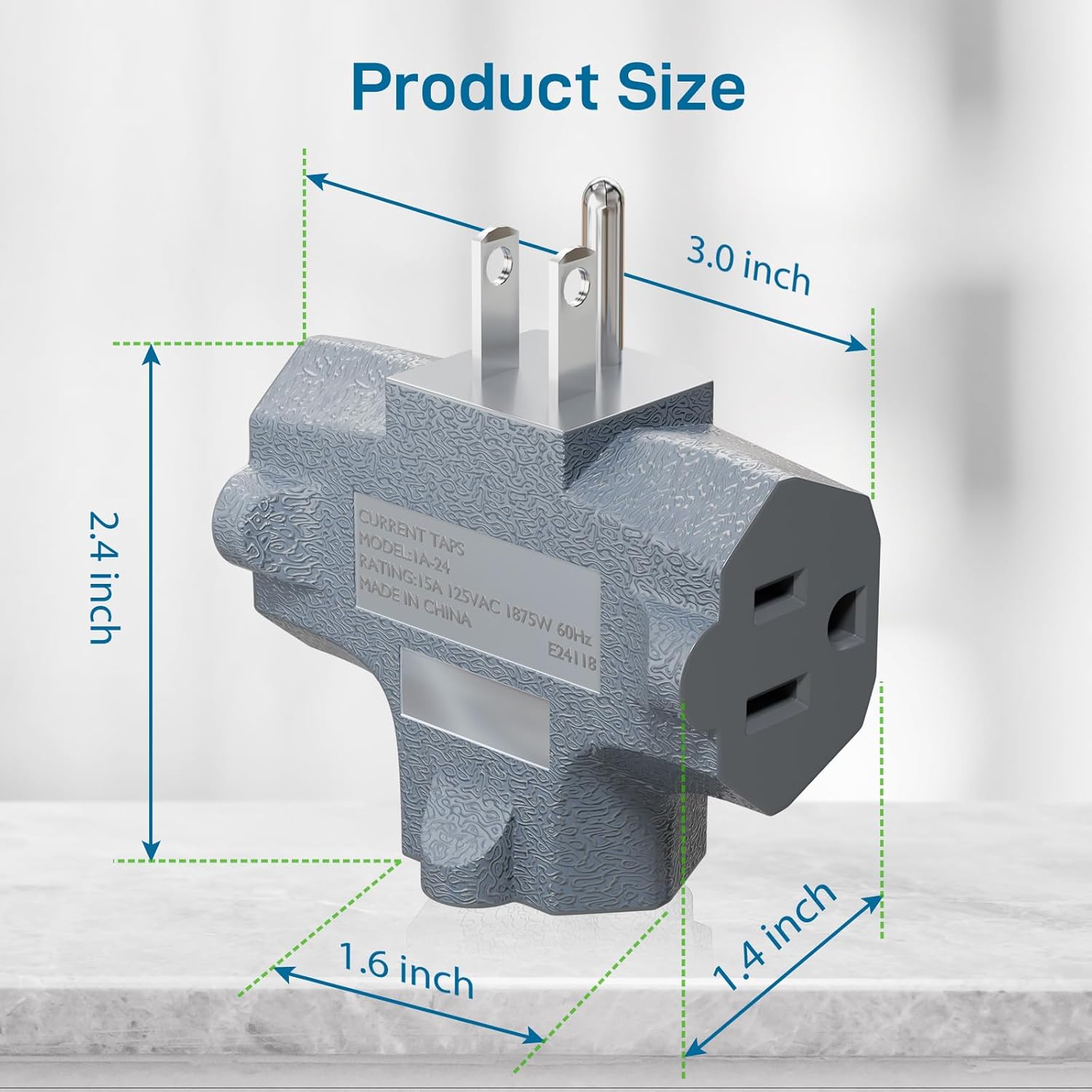 3 PLUG OUTLETS - Extender turns one grounded outlets into three, Accepting Both Polarized and Grounded Plugs.