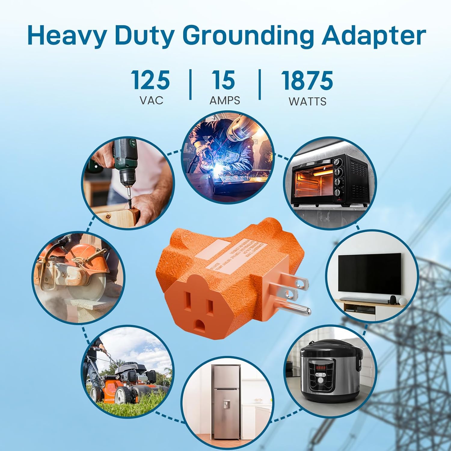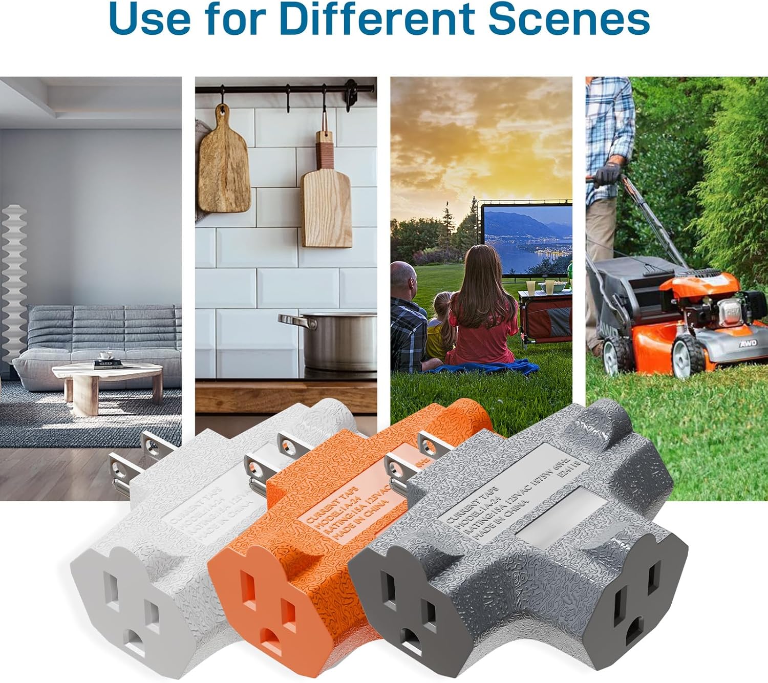 K KASONIC - 3-Outlet Grounding Adapter, [UL Listed] Plug Extender, Heavy-Duty Grounded Power Tap - 3 Pack (Orange)