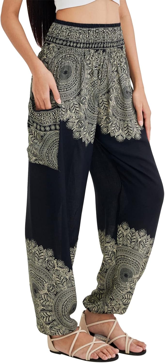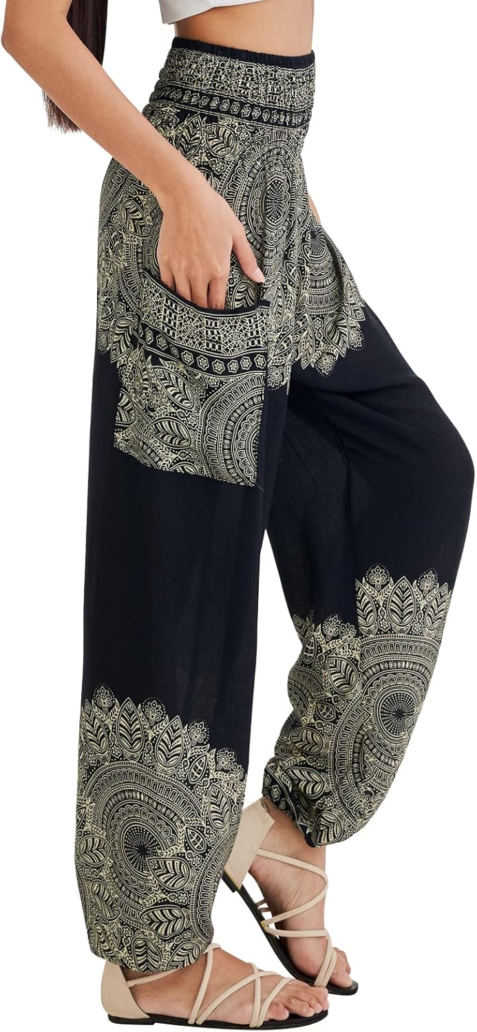 VERSATILE STYLE - The lightweight and breathable fabric features ornate and ethnic prints perfect to practice yoga, pilates, zumba, dance, stretching, beach party, run errands, or chill around the house in style. Your new womens lounge pants are great for summer pajamas and hot weather.