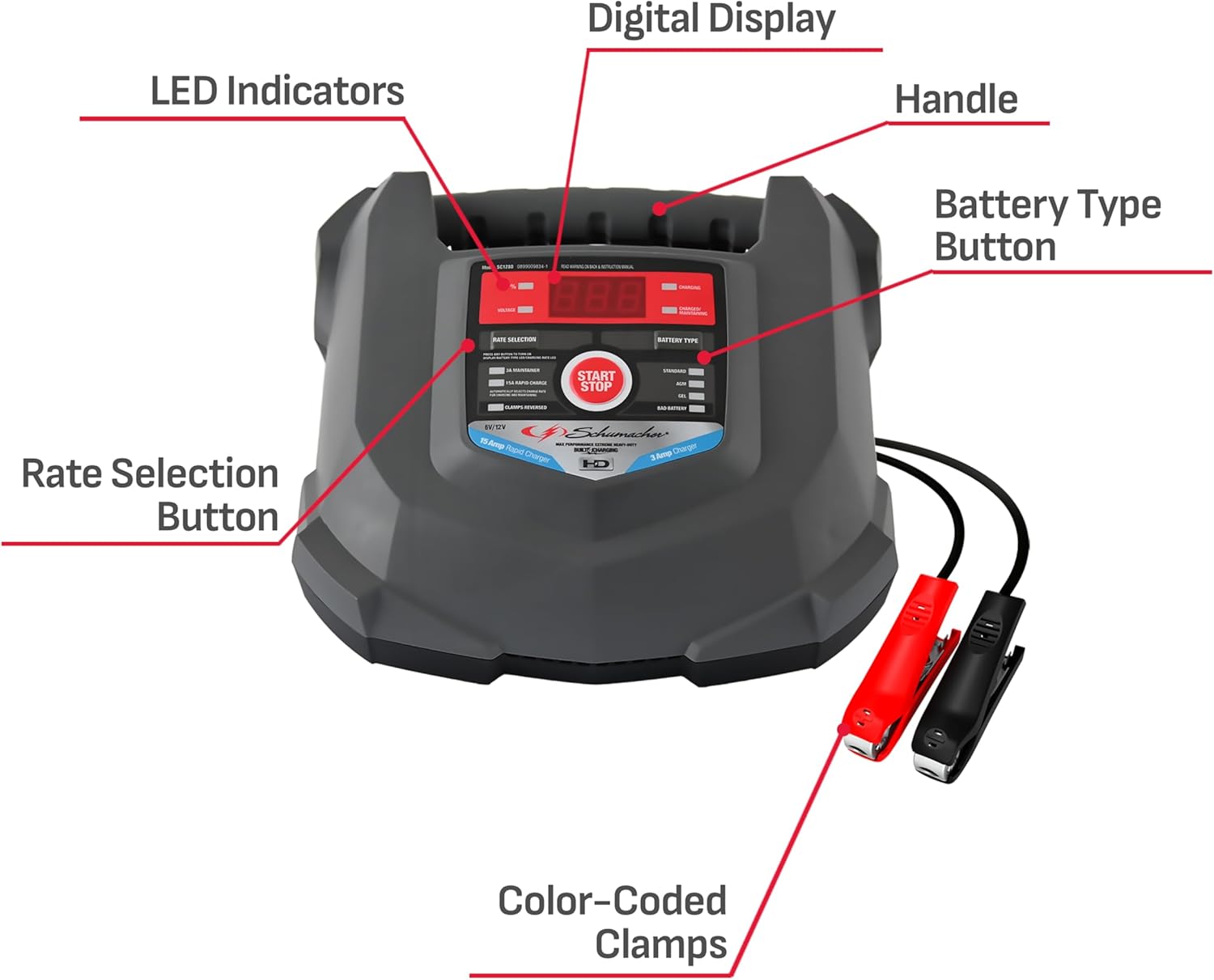 Quick Charging - Provides fast 15-amp (12-volt), 2-amp (6-volt), and 3-amp (12-volt) for small batteries