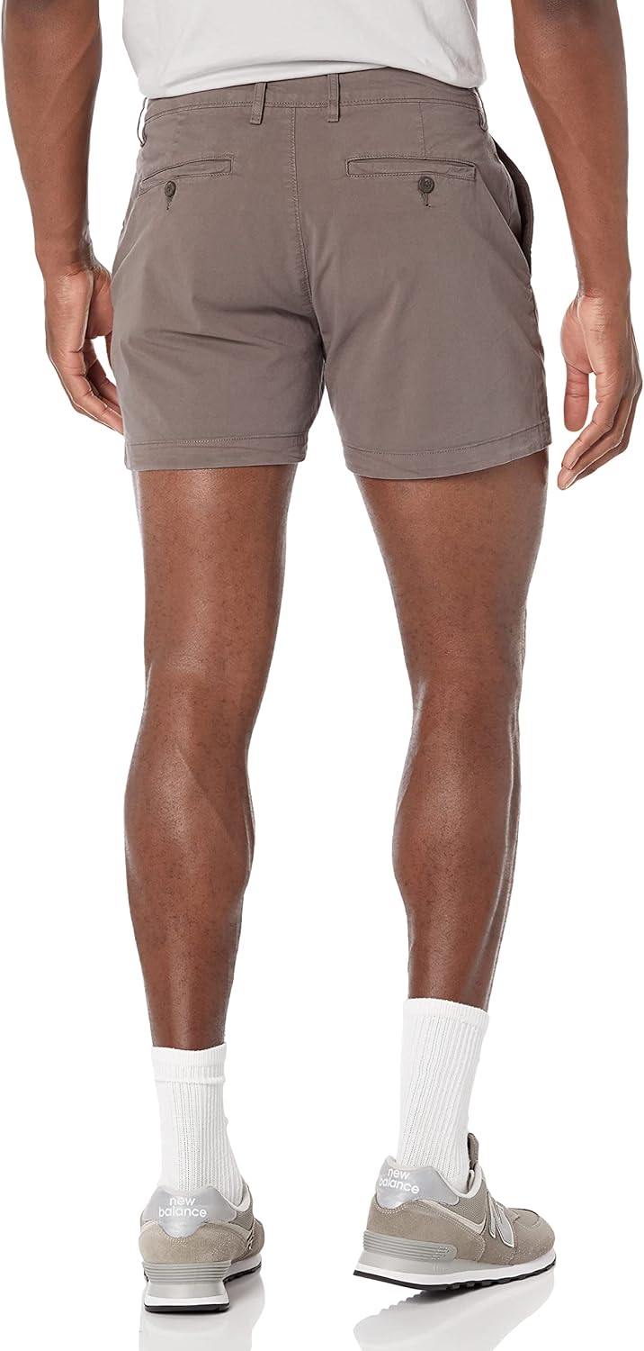 KHAKI CHINO STYLING: Classic khaki chino shorts in a stretch, garment-washed fabric for a versatile warm-weather wardrobe staple.