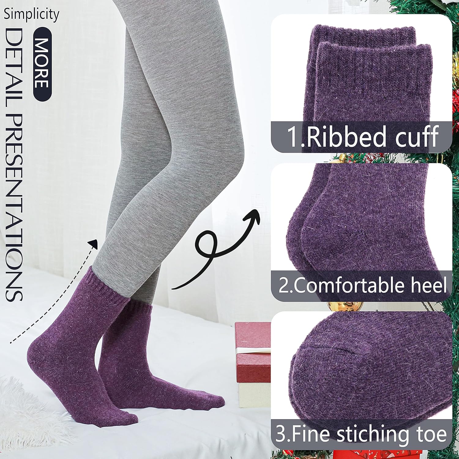 BREATHABLE & Warm & COZY : The material for this stylish women wool socks is very soft and comfortable.Fuzzy inner design will keep your feet warm, the breathable and soft fabric will also keep your feet comfortable all the day.