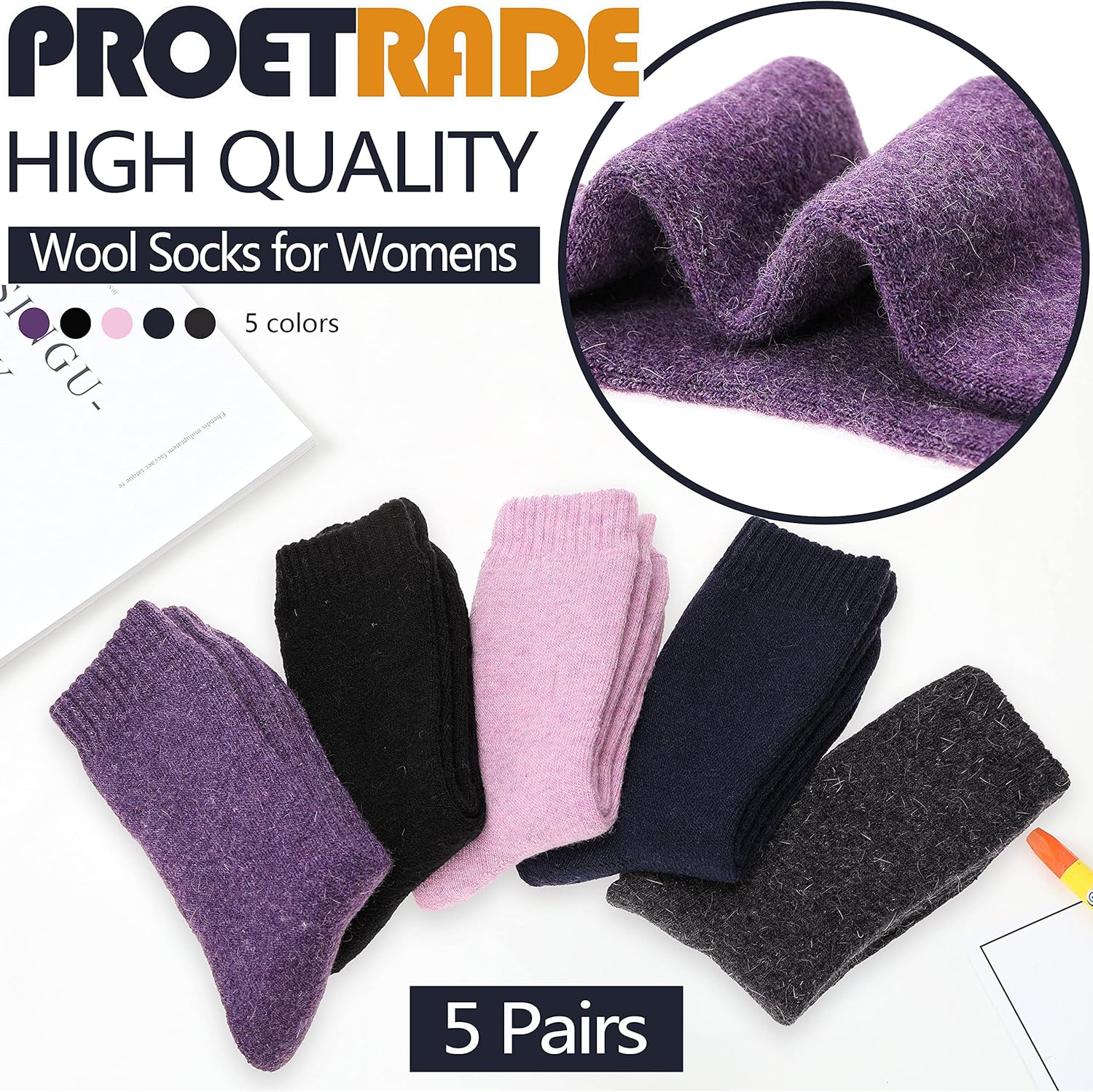 HIGH QUALITY : The womens wool socks for teen girls is blend of merino wool, this wool socks are heavy, soft, comfortable, breathable, warm,thermal, cozy. It's a perfect wool hiking socks for women or teen girls.