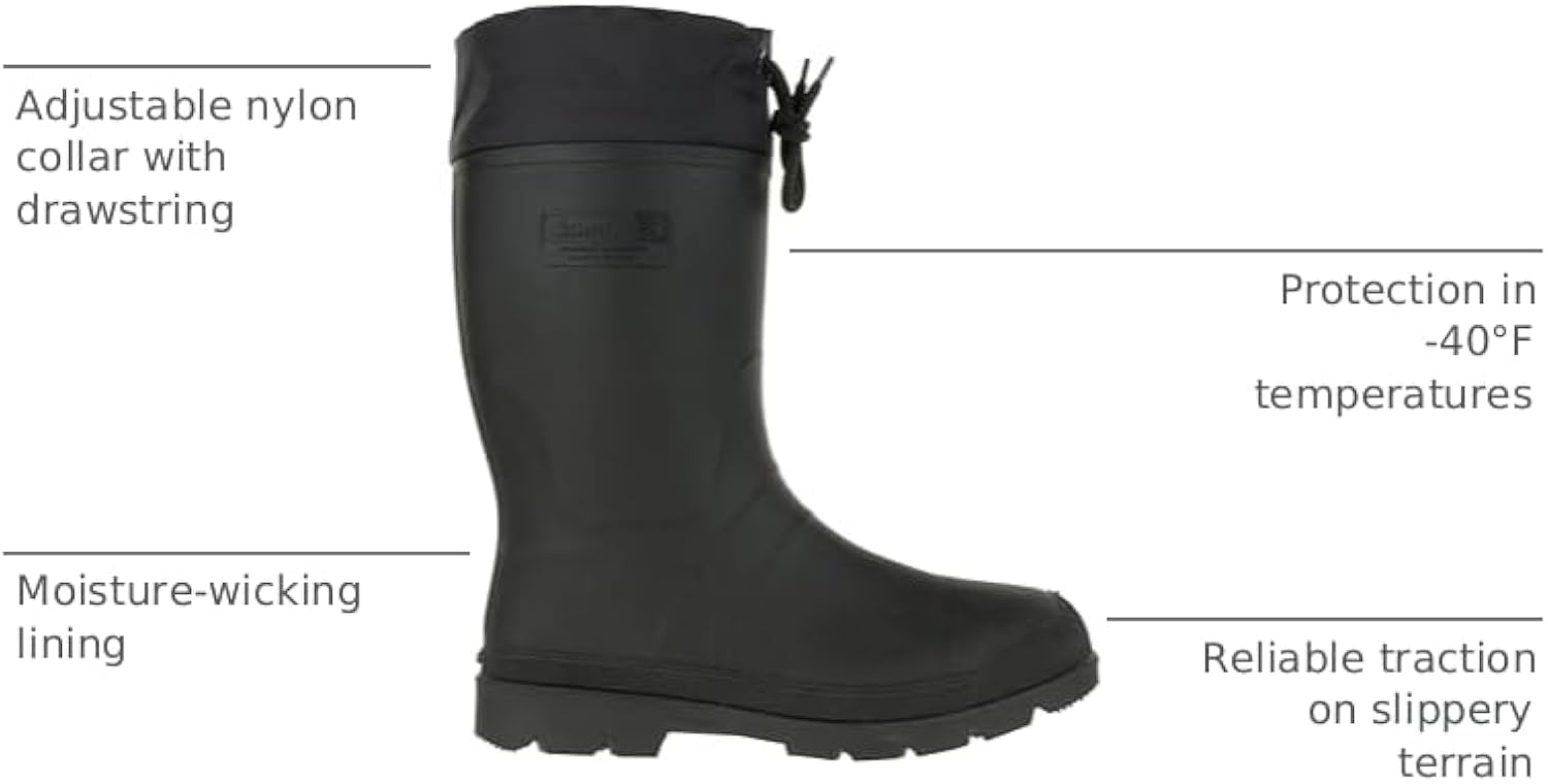 WATERPROOF DEFENSE: Conquer wet and muddy terrains with confidence thanks to a waterproof rubber upper that keeps feet dry in any conditions. These rubber winter boots for men ensure protection from snow, slush, and rain
