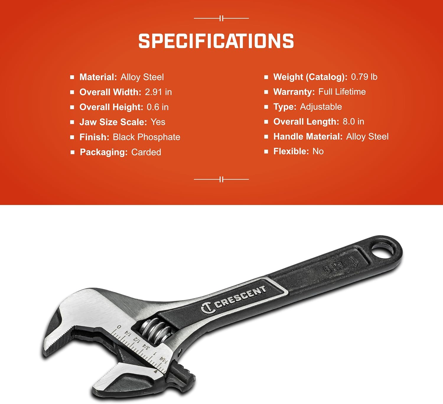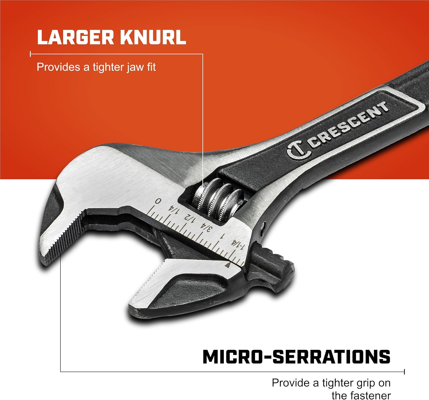 Crescent Wide Jaw Adjustable Wrench - Home Improvement, Repair & Garage Hand Tool - Wide Mouth Versatile Plumbing Tool - ...