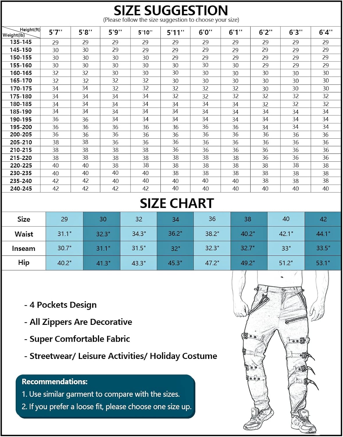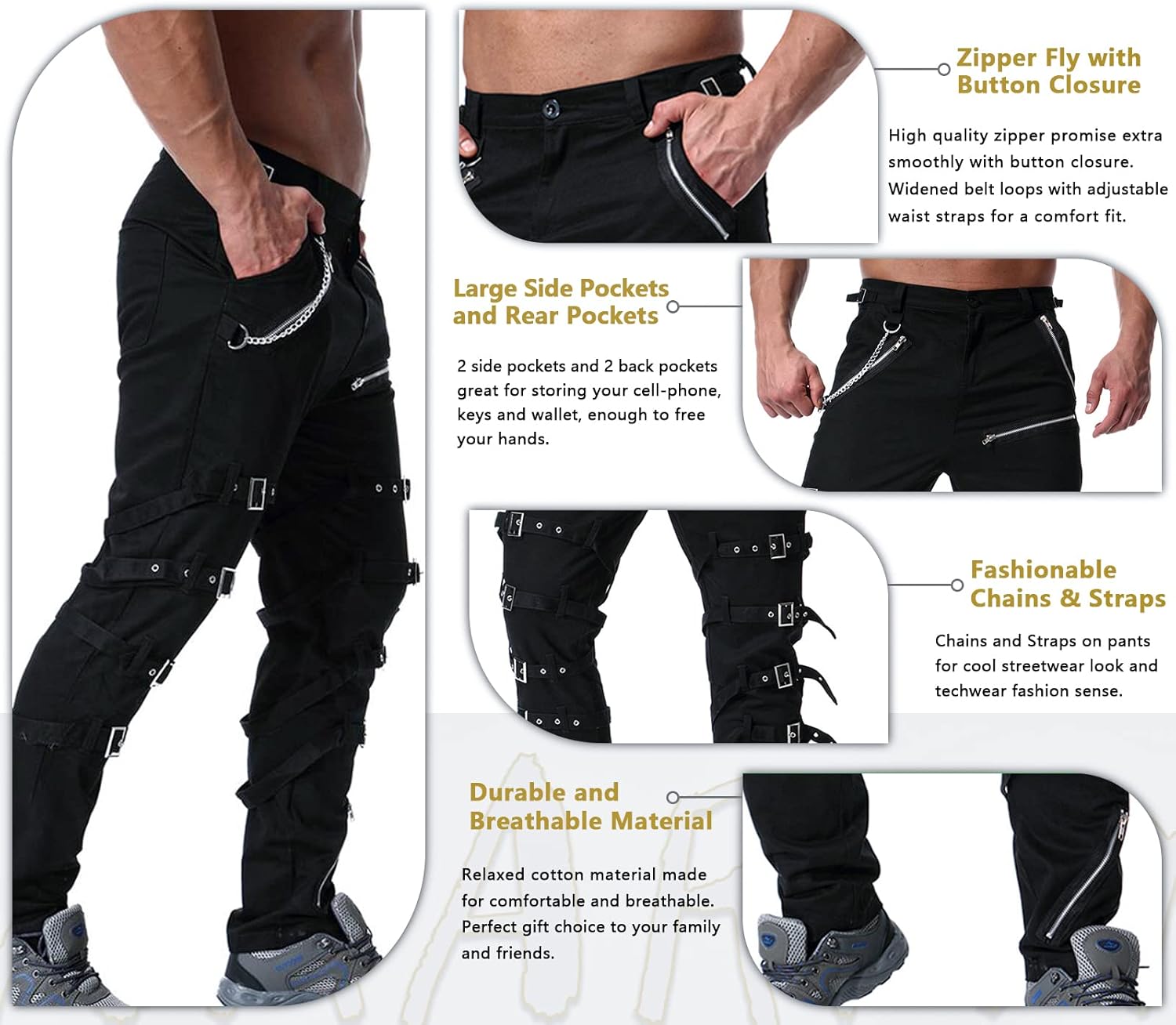 Techwear Pants with Straps. Men and boys unique rock novelty punk gothic pants club vacation hip-hop pants. Order a pair of our cargo pants for great looking, durable pants that you’ll want to wear everywhere you go. Perfect gift choice for your father, friends or boyfriend for Birthday Gift, Halloween Costumes and Christmas Day Gift.