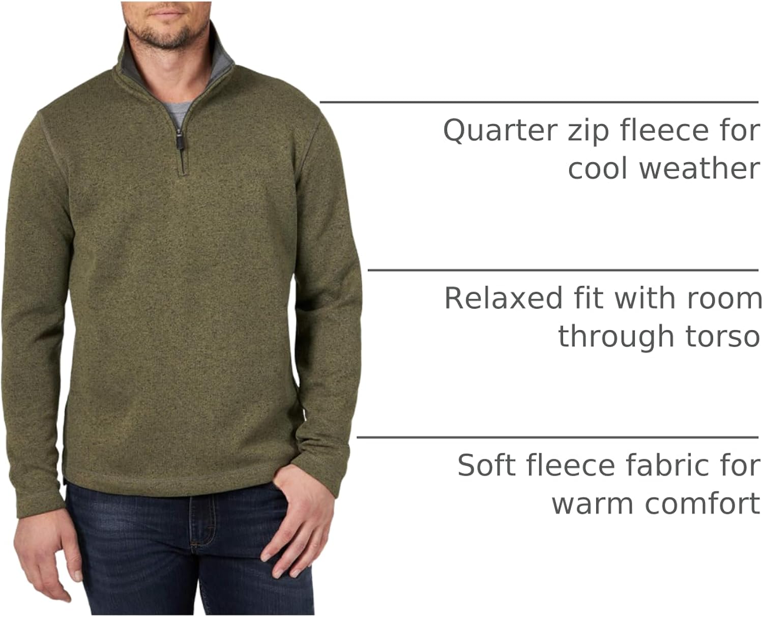 RELAXED FIT. Built with room through the torso, this quarter zip fleece is designed to keep you comfortable and warm on those cooler days.
