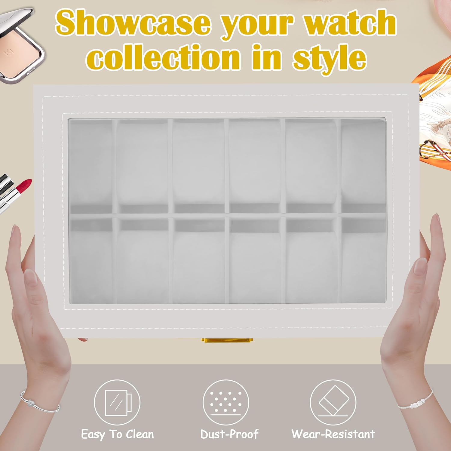 【Real Glass Top】The genuine glass cover protects your watches from dust while allowing you to easily view all the watches inside the box, helping you quickly choose which one to wear. It showcases your entire watch collection in a stylish, practical, and clear manner.