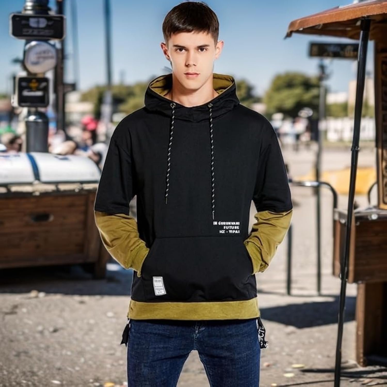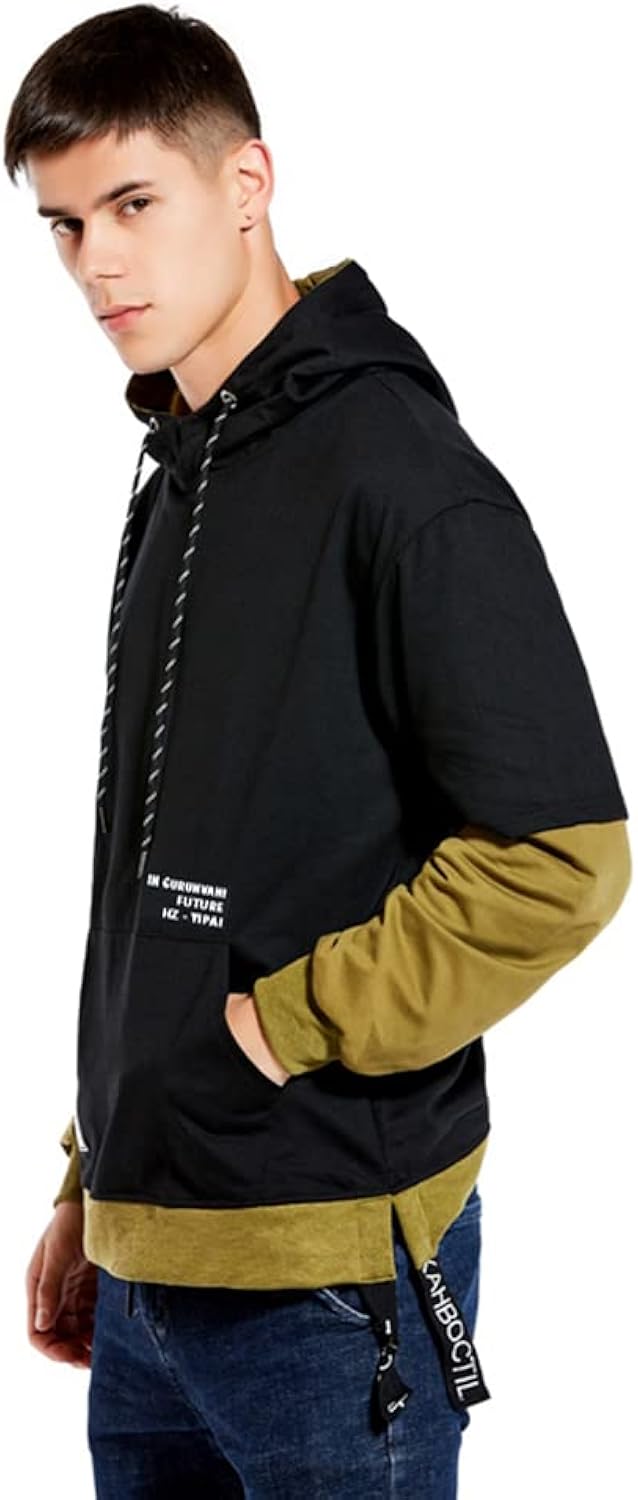 GURUNVANI Contrast Color Pullover Hoodie Mens Patchwork Hoodies Men