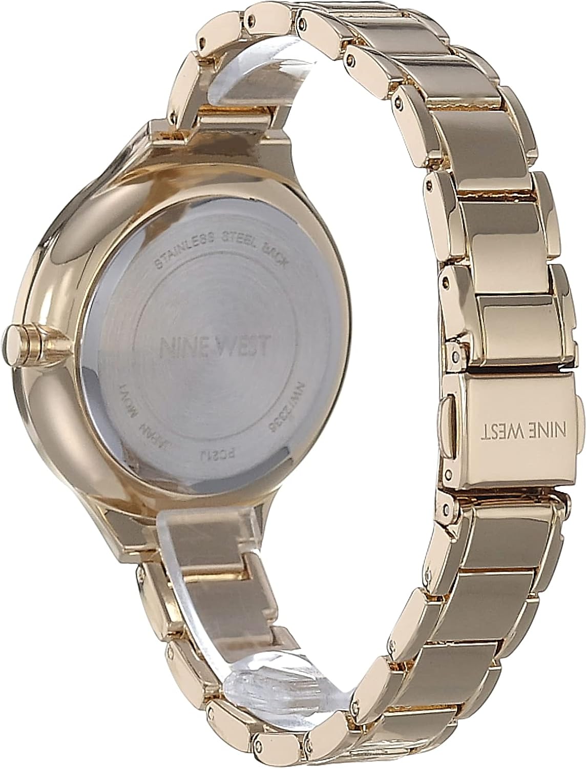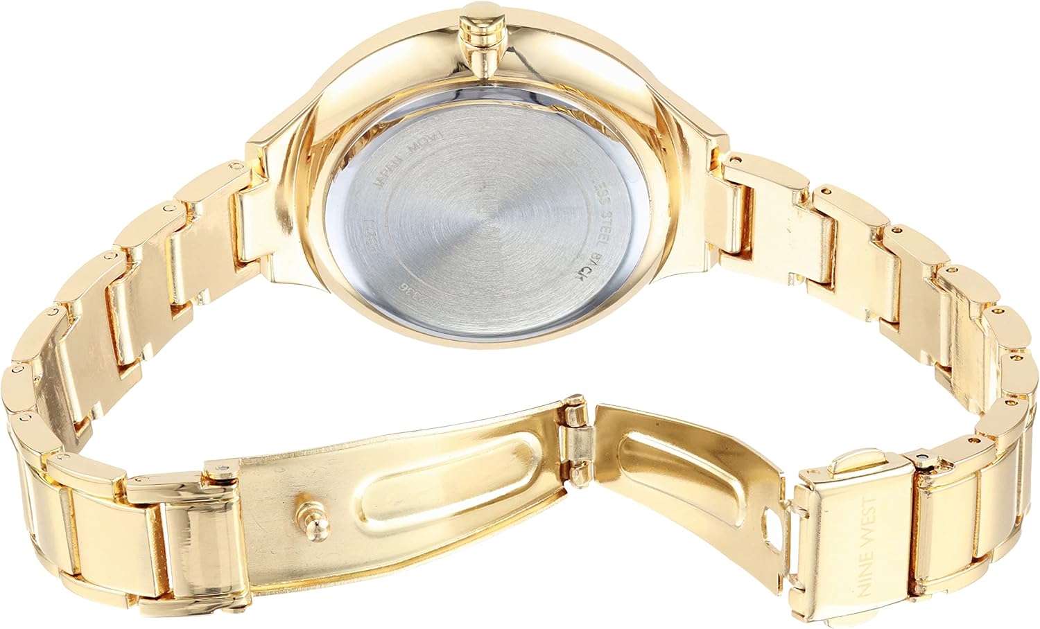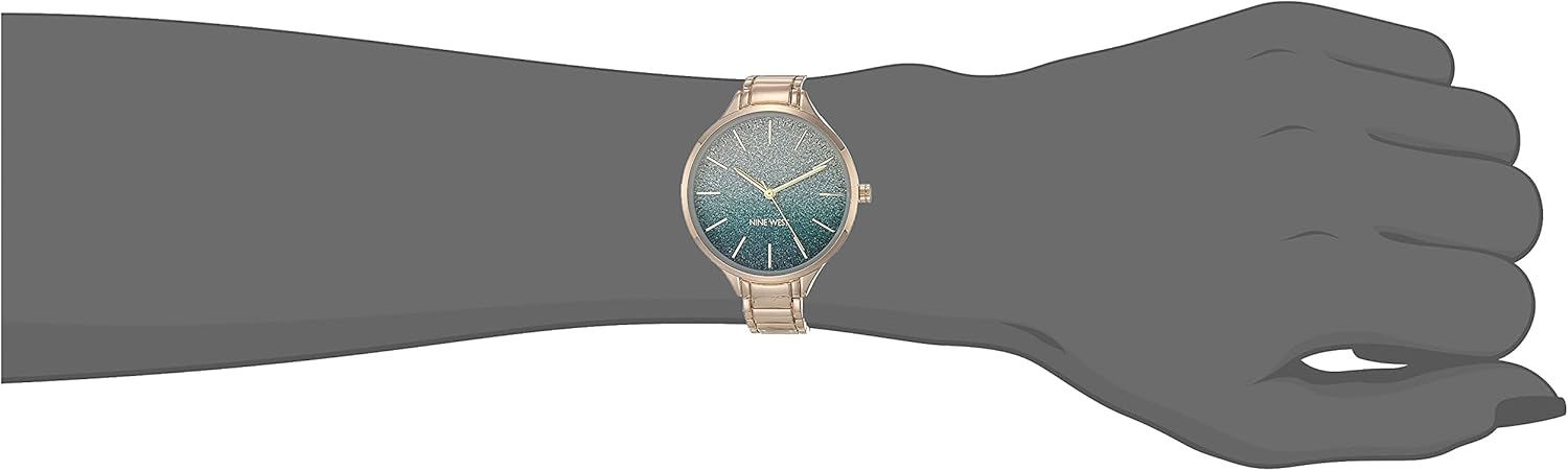 Champagne and green glitter ombre dial; gold-tone hands and markers; black outer minute track