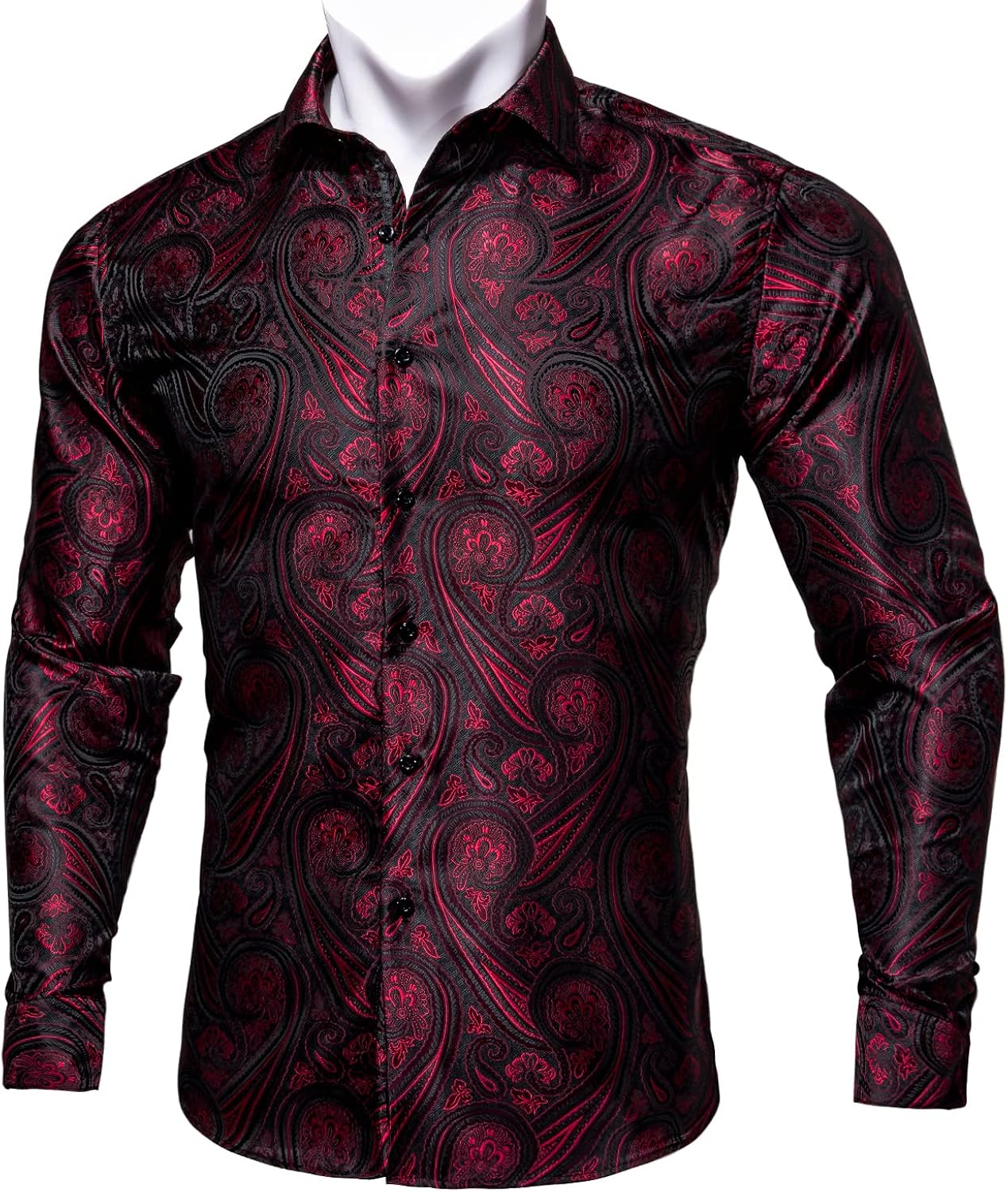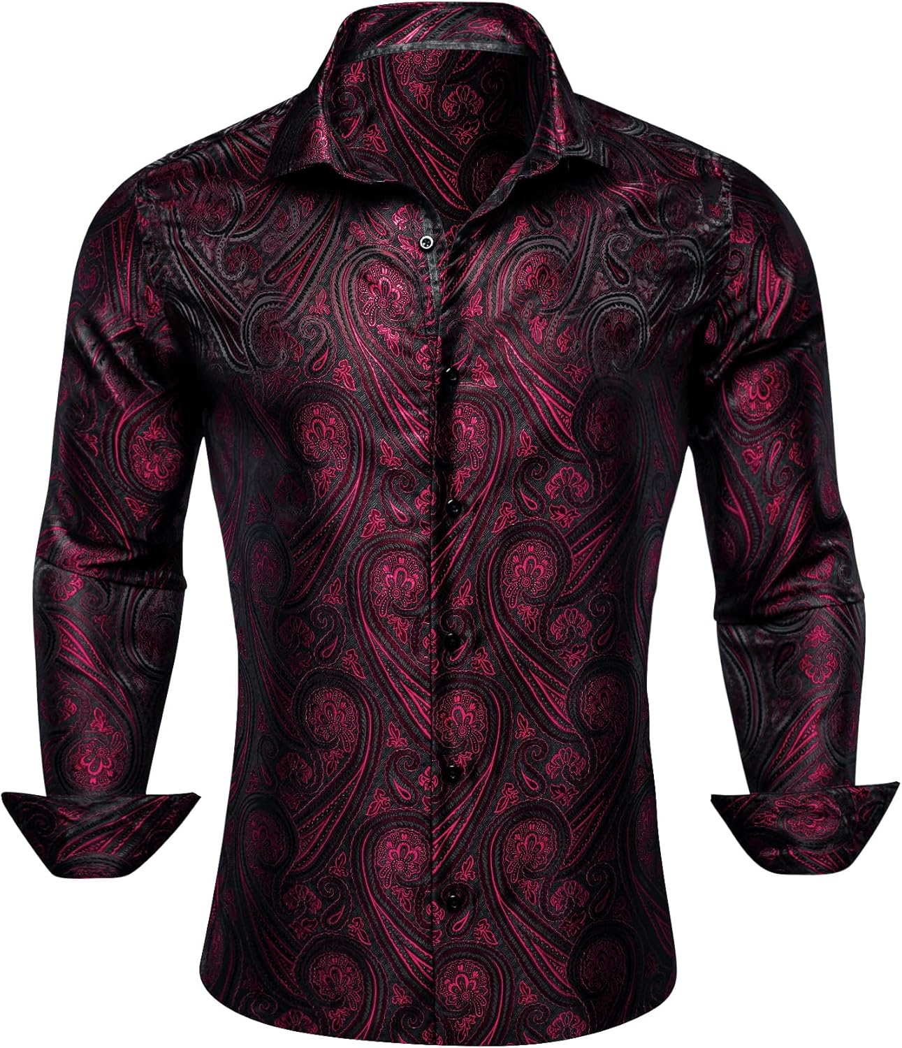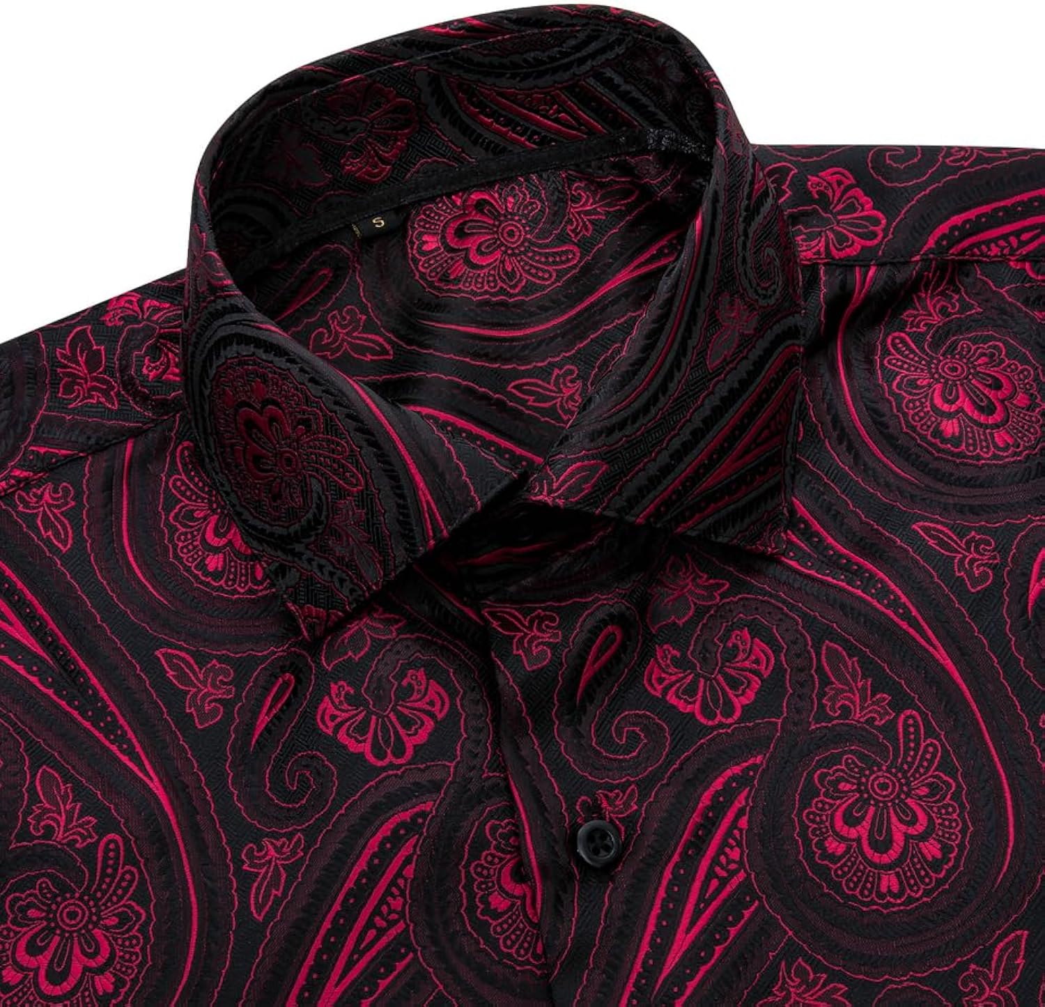 Barry.Wang Mens Western Shirts Silk Paisley Long Sleeve Button Down Dress Shirt Designer Mexico Cowboy Shirt Party Casual