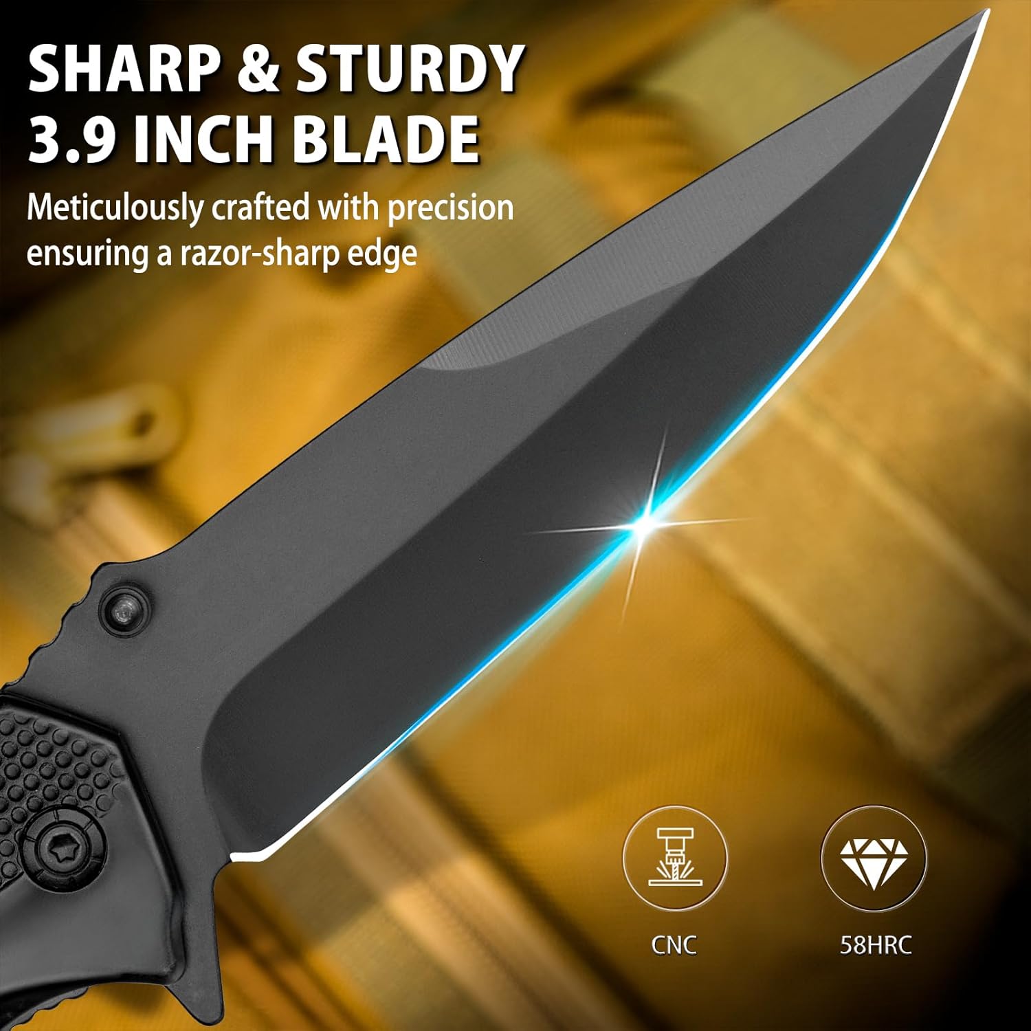 UPGRADED FRAME LOCK: The tactical EDC knife features an upgraded high-strength frame lock (thickness ≥3.3 mm), providing superior load-bearing capacity (up to 1,500 N axial force) and enhanced resistance to deformation under stress. This design effectively prevents accidental closing, thereby ensuring greater security and reliability.