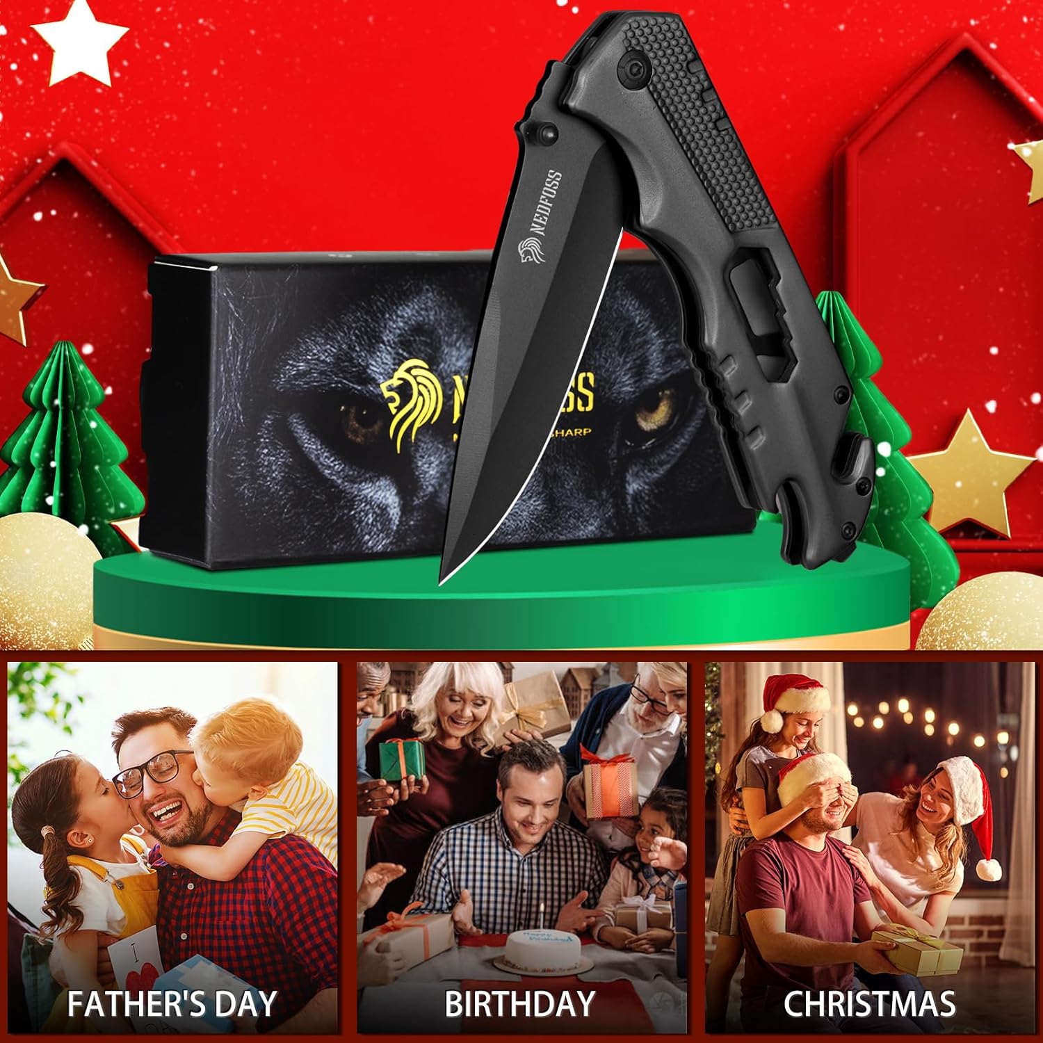 NedFoss FA48 Pocket Knife for Men with Bottle Opener, Glass Breaker, Seatbelt Cutter and Wrench, 5-in-1 Multitool Folding/...