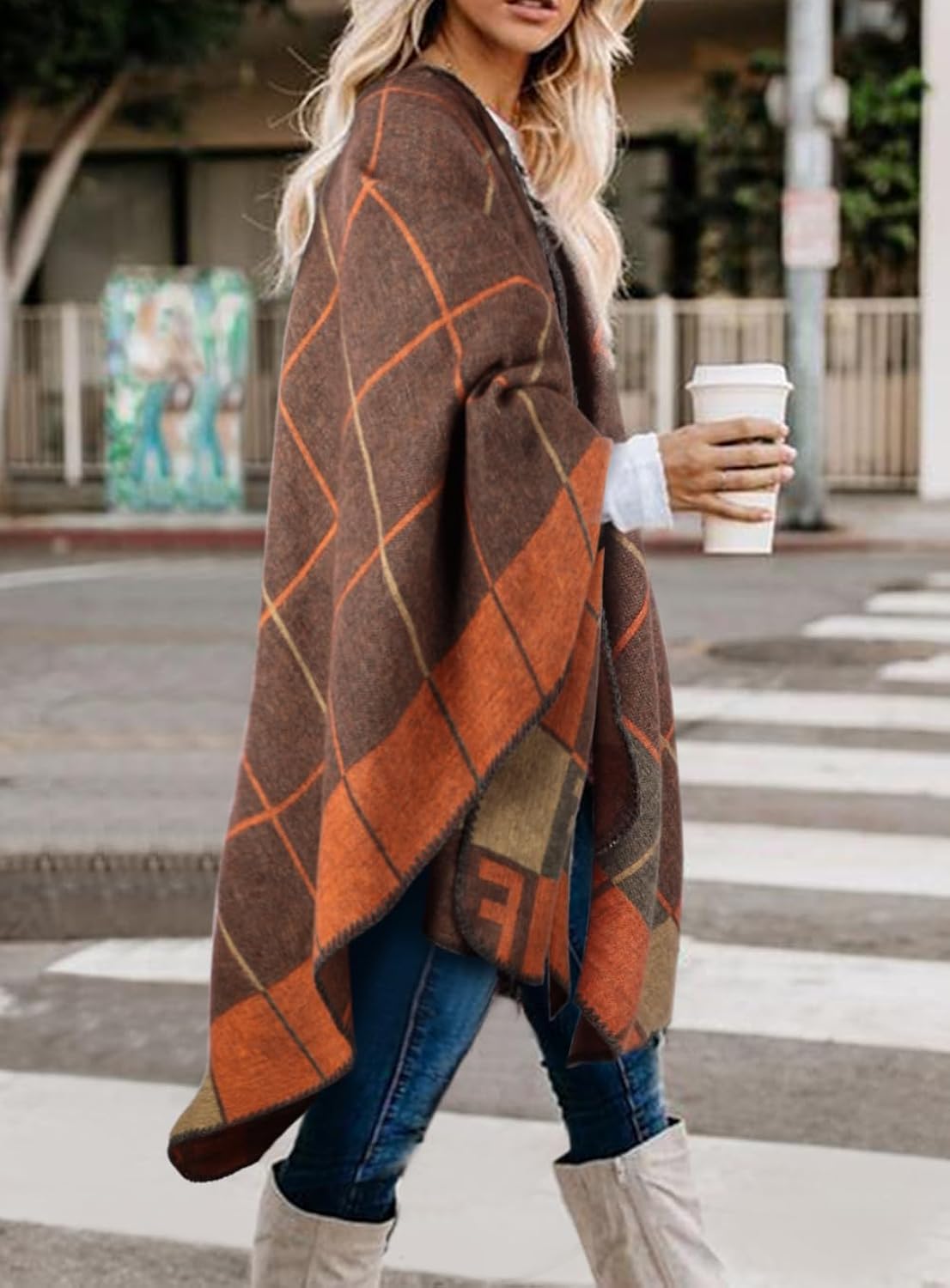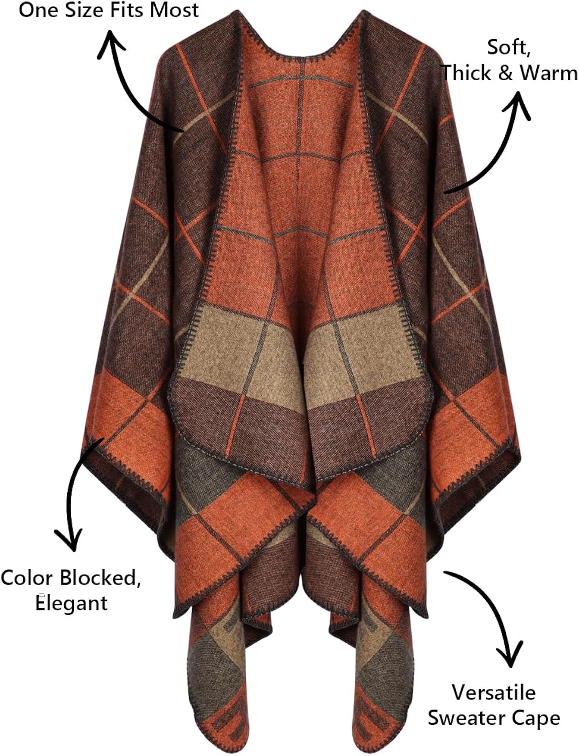 Open Front: poncho wrap, womens ponchos and wraps, fall/winter poncho cardigan, sweater cape, shawl wraps for women, warm plus size ponchos for women, great thanksgiving gift for women, christmas gift for women&girls, tassel buffalo plaid poncho cape, poncho blanket keep you warm in the cold fall and winter.
