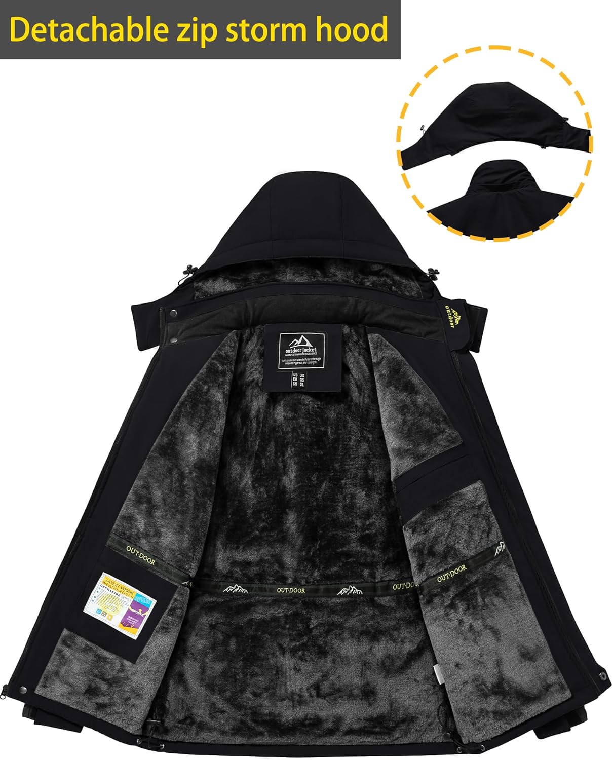 【Windproof】1. Adjustable cuffs and adjustable hem with buckle, help seal in warmth; 2. Detachable storm hood, stand collar, and full zipper closure, all the well-designs keep out the wind effectively; 3. Wear a soft shell that is highly windproof and warm.