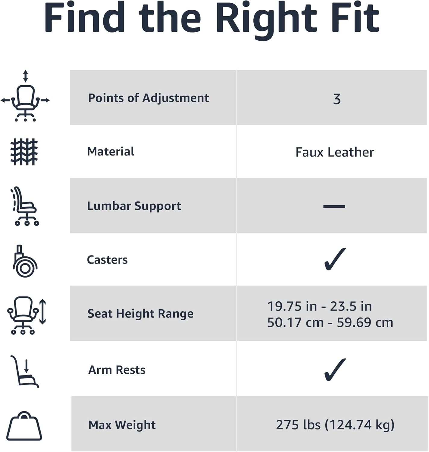 COMFORTABLE DESIGN:Puresoft PU upholstery in Black; contoured padded seat, backrest, and armrests for comfort; durable caster wheels for smooth-rolling mobility
