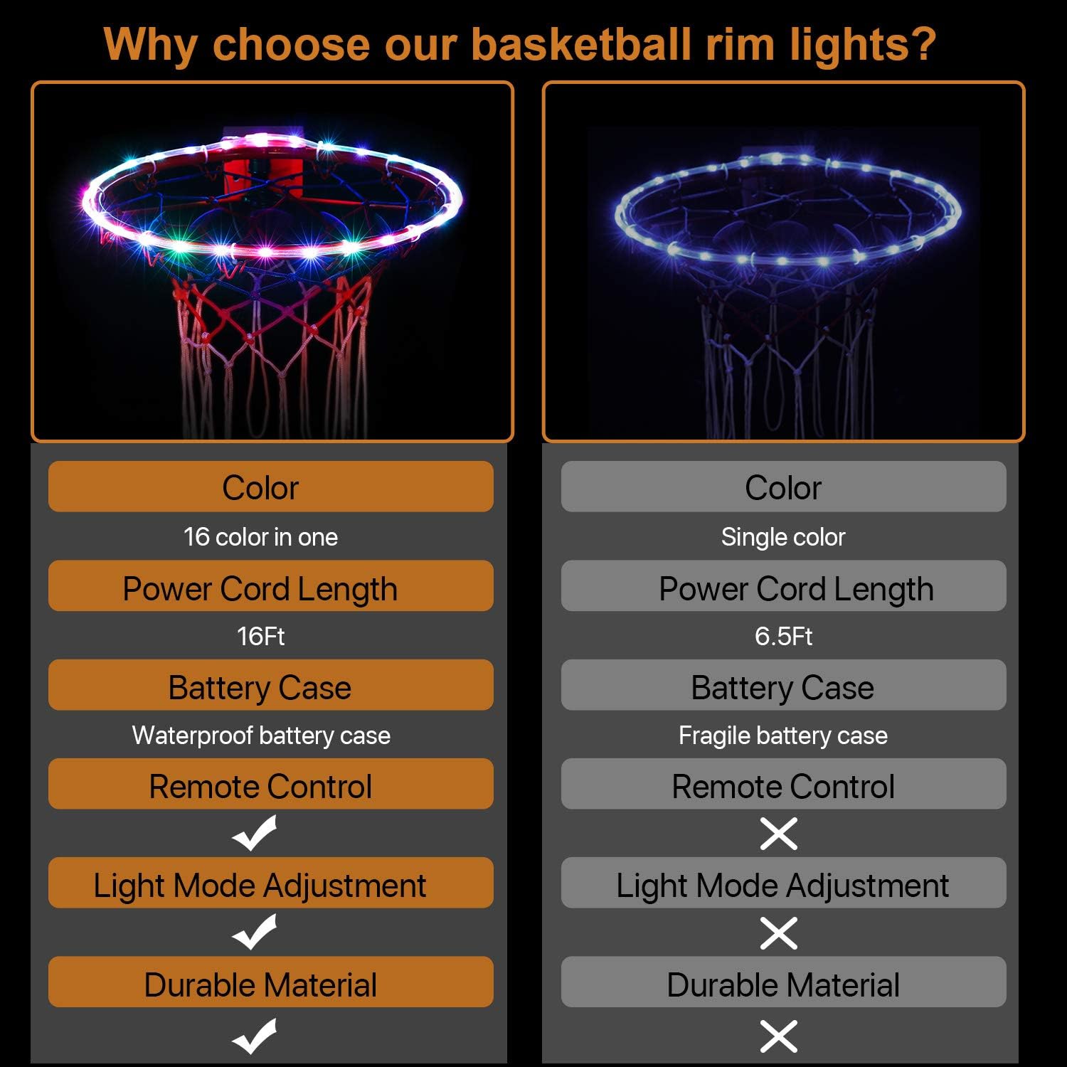 【LIGHT UP BASKETBALL RIM AT NIGHT】: Our LED Strip Light can light up the rim of the basketball hoop and have up to sixteen unique light patterns, helping to accurately record the score and increasing children's interest in playing basketball, enjoy the fun of playing basketball at night!