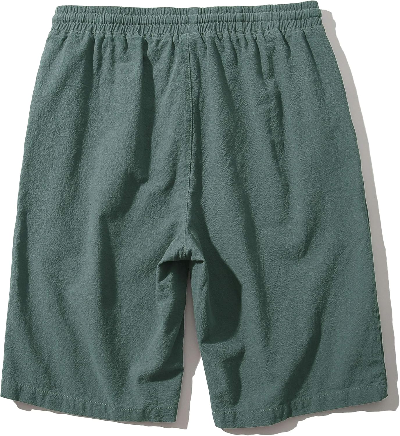 Material:50%Cotton 50%Linen.This shortcut has comfortable lightweight cotton&linen fabric with a flat front design.