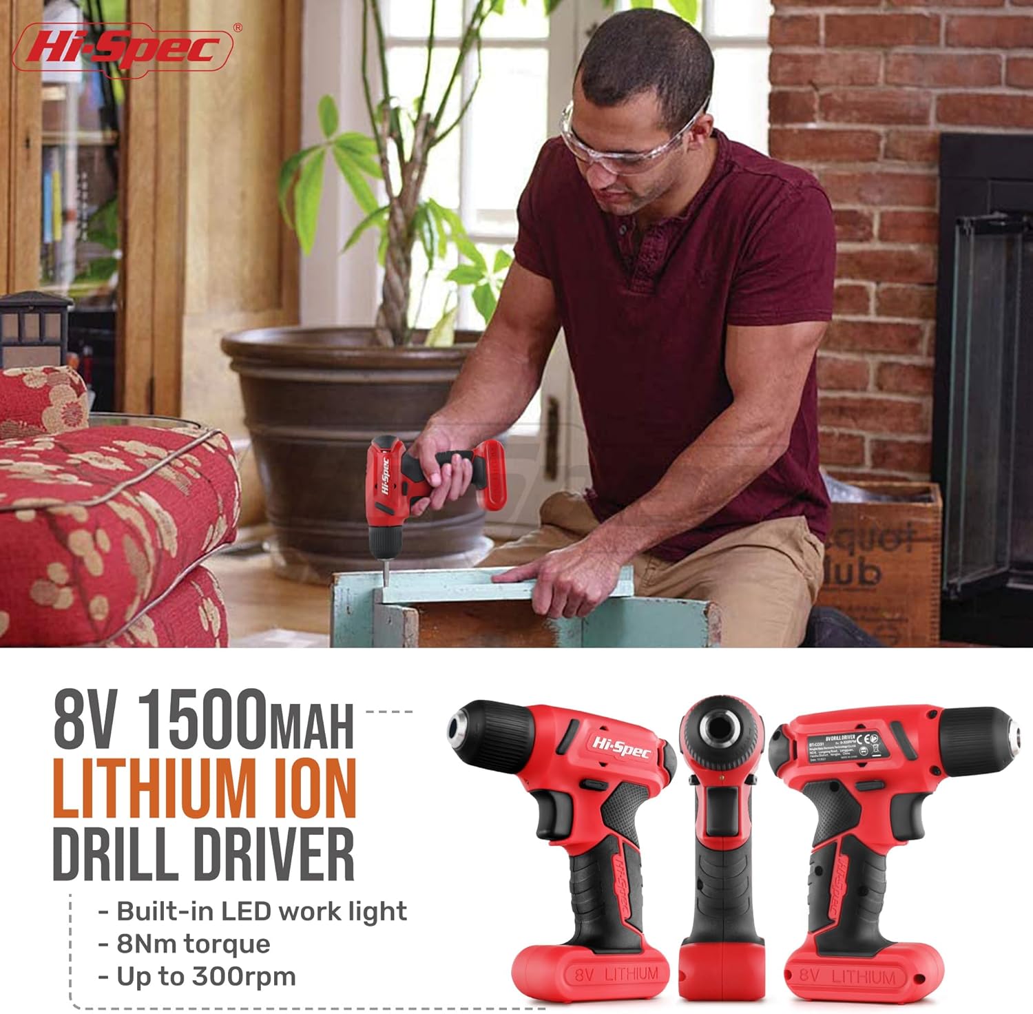 Cordless Electric Drill and Screwdriver: Easy to handle and lightweight; 8Nm of torque quickly drills wood, plastics, soft metals, and effortlessly completes screwdriving. Note: Not for concrete, brick, tile or hard metal