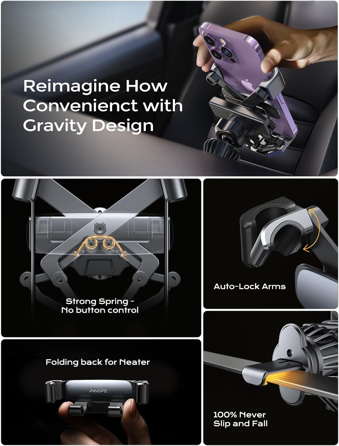 DOING RESPONSIBLY & SUSTAINABLY: As a responsible company, AINOPE operates sustainably, to high environmental and social standards. We continue to embed sustainability ever deeper in the way we do business – in our own operations and beyond, together with our suppliers. AINOPE cell phone car accessories phone holders for car vent comes with 7/24 after-sale service, so you can contact us when facing trouble . Our service team will always stand by your side.