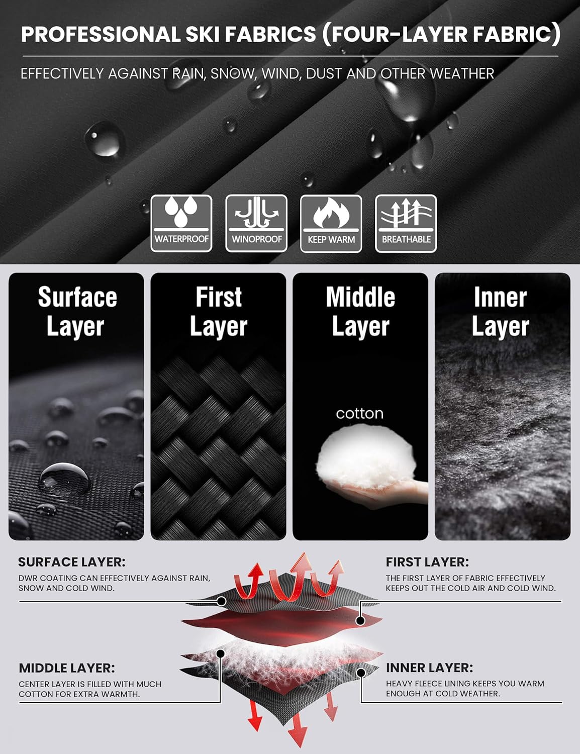 Waterproof Winter jackets: These winter jackets for men will help you keep dry on snowy or rainy day. Totally a perfect choice for skiing and snow sports! Besides, all the zippers are waterproof, can prevent water permeating into the ski jacket