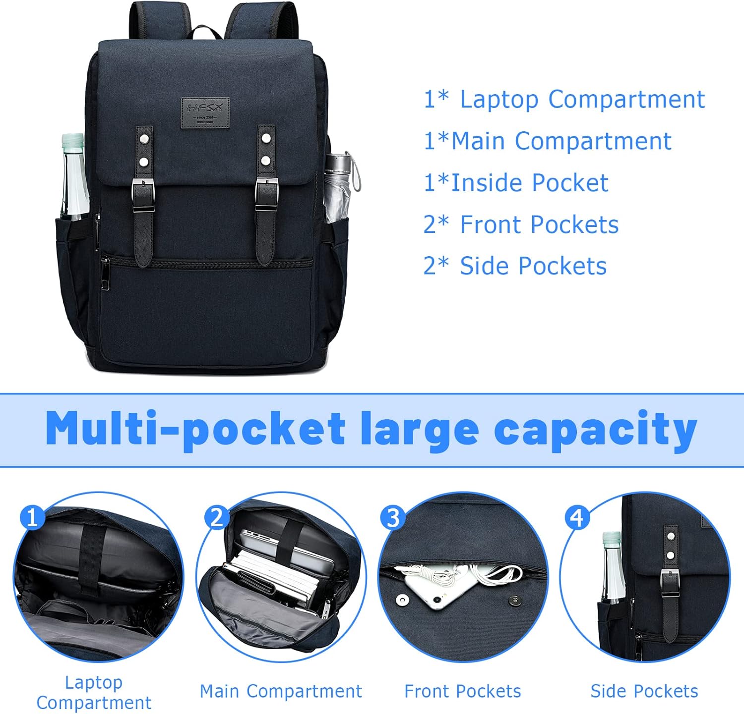 【Large Storage Space】One separate laptop compartment hold 15.6 Inch Laptop as well as 15 Inch, 14 Inch and 13 Inch Macbook/Laptop. One spacious front compartment roomy for daily necessities, tech electronics accessories. main compartment with many pockets, pen pockets, make your items organized and easier to find