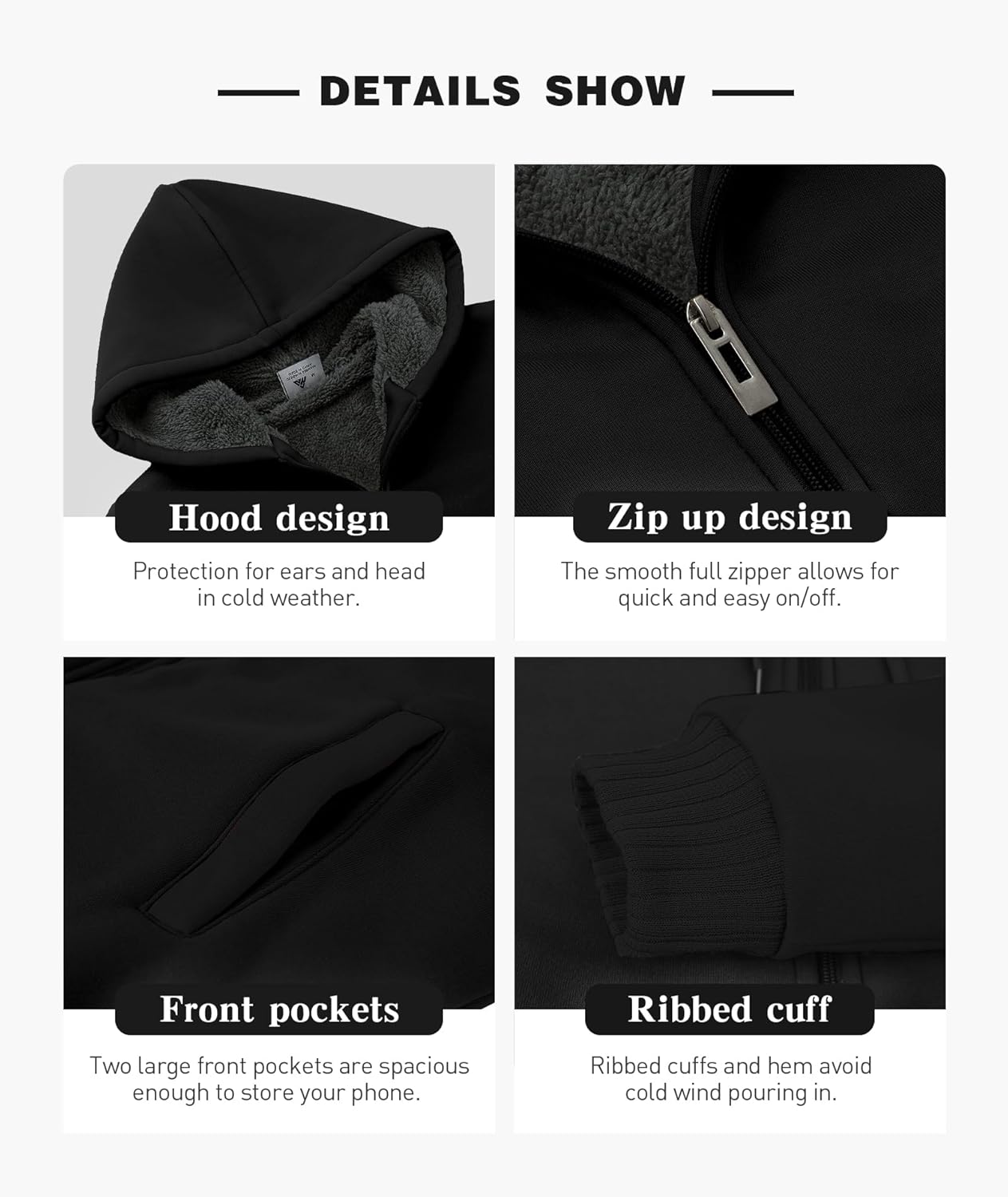WARM WINTER HOODIE: Soft and comfortable , thick and soft sherpa lined keeps you warm and comfortable in cold weather