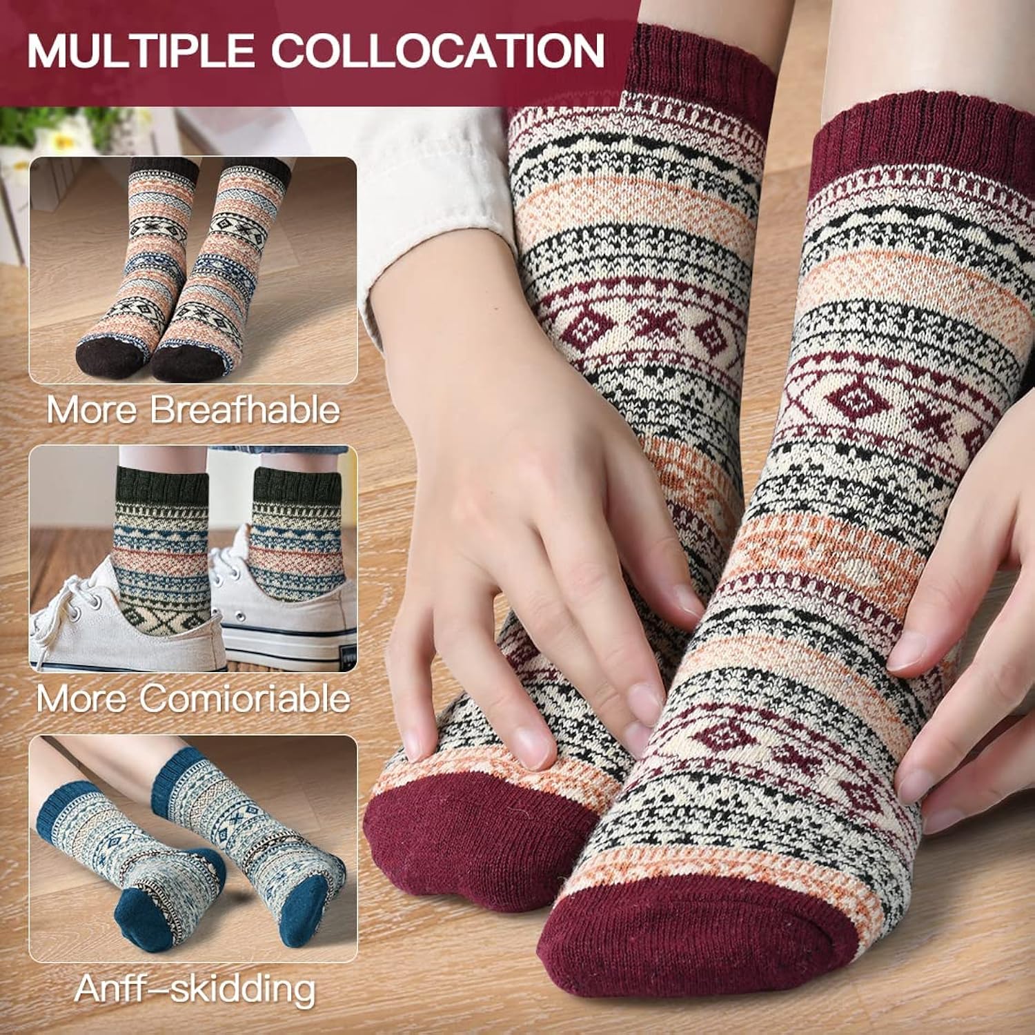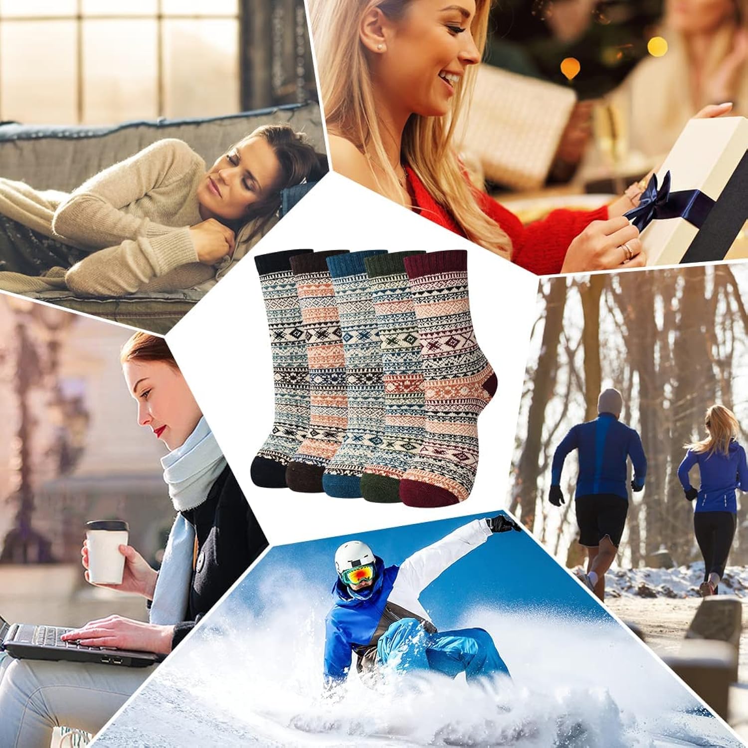 【MATERIA &Package】The style and quantity are consistent with the product picture (5 pairs per box), and the box packaging reflects more neat and convenient. Ladies’ thermal socks are made of high-quality materials, including wool, cotton, polyester, and spandex. This ladies wool socks are very soft , Breathable, wear-resistant, keep your feet comfortable, even on the home floor. Socks provide you with better quality, you deserve to have in winter, please rest assured to use.