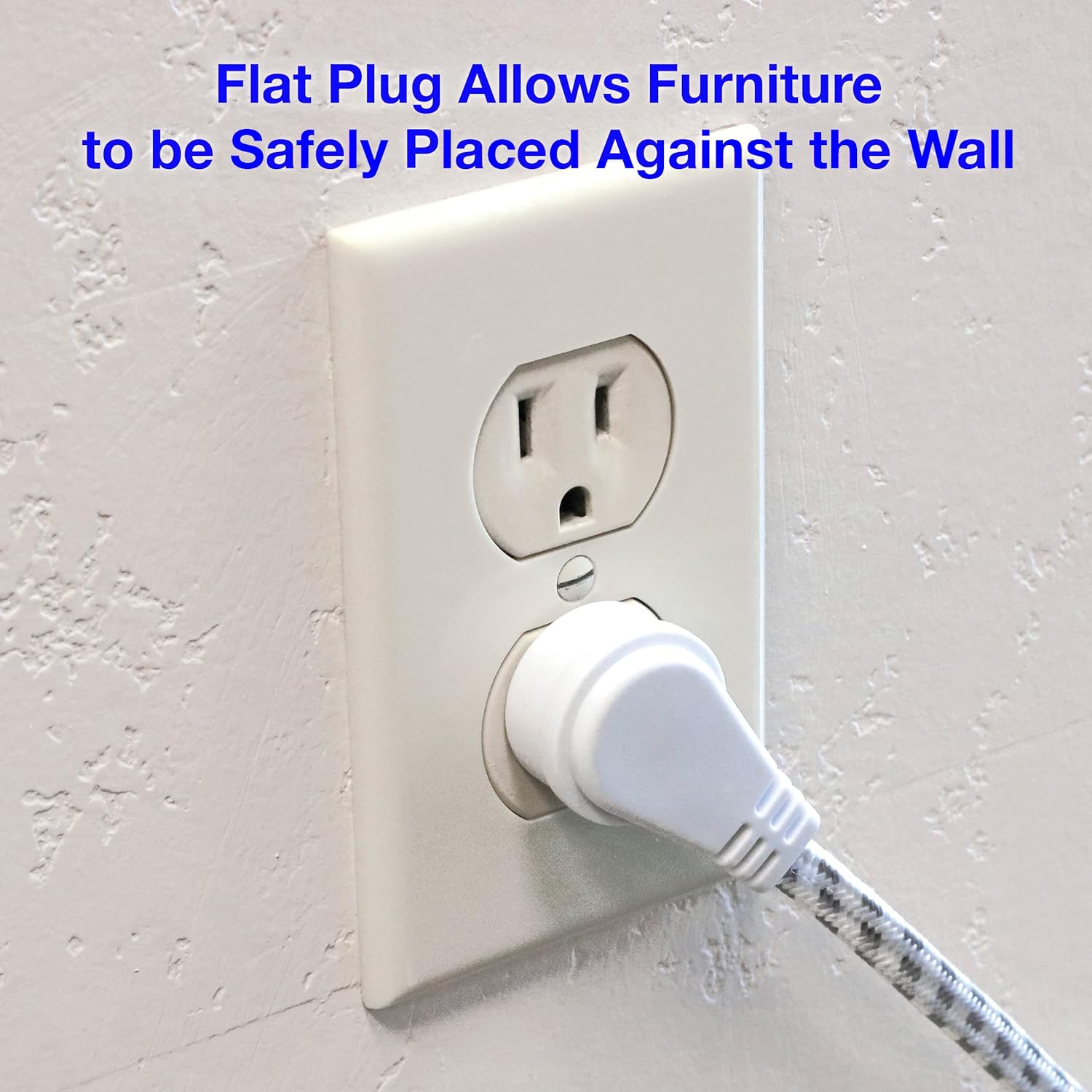 2-prong polarized low profile plug allows furniture to be safely placed close to the wall