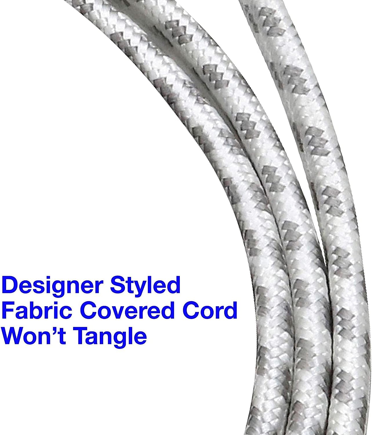 Tangle-free designer-styled fabric covered wire adds flair to décor