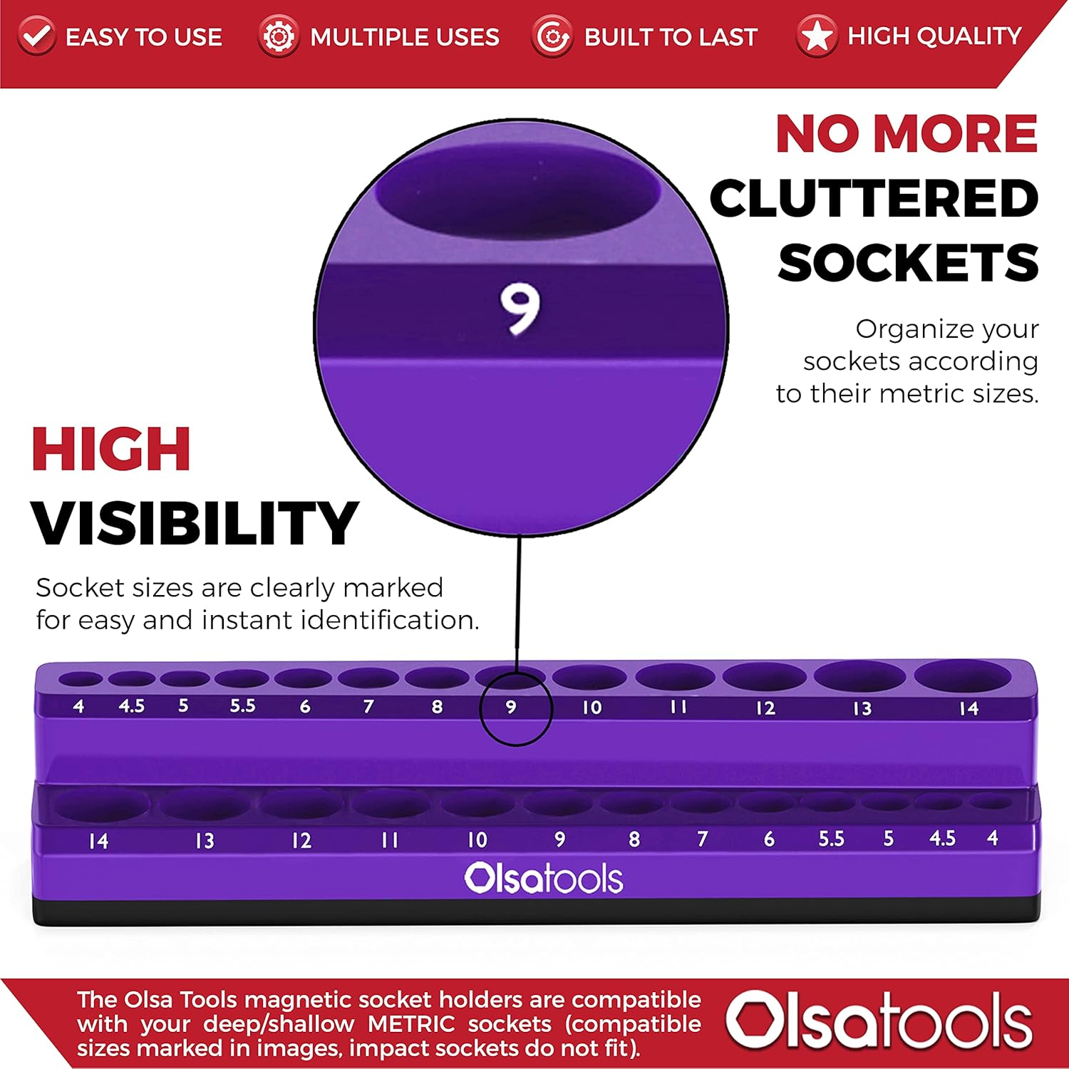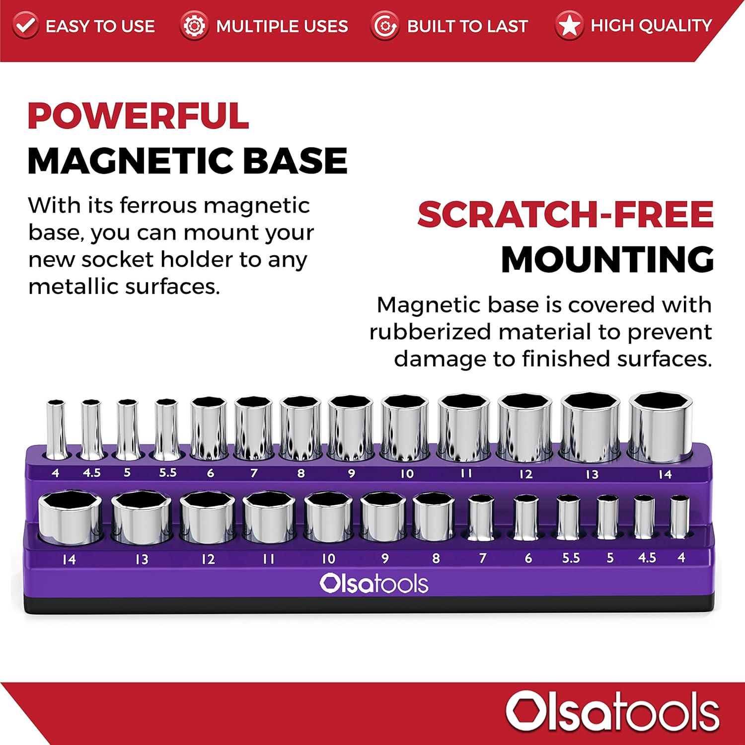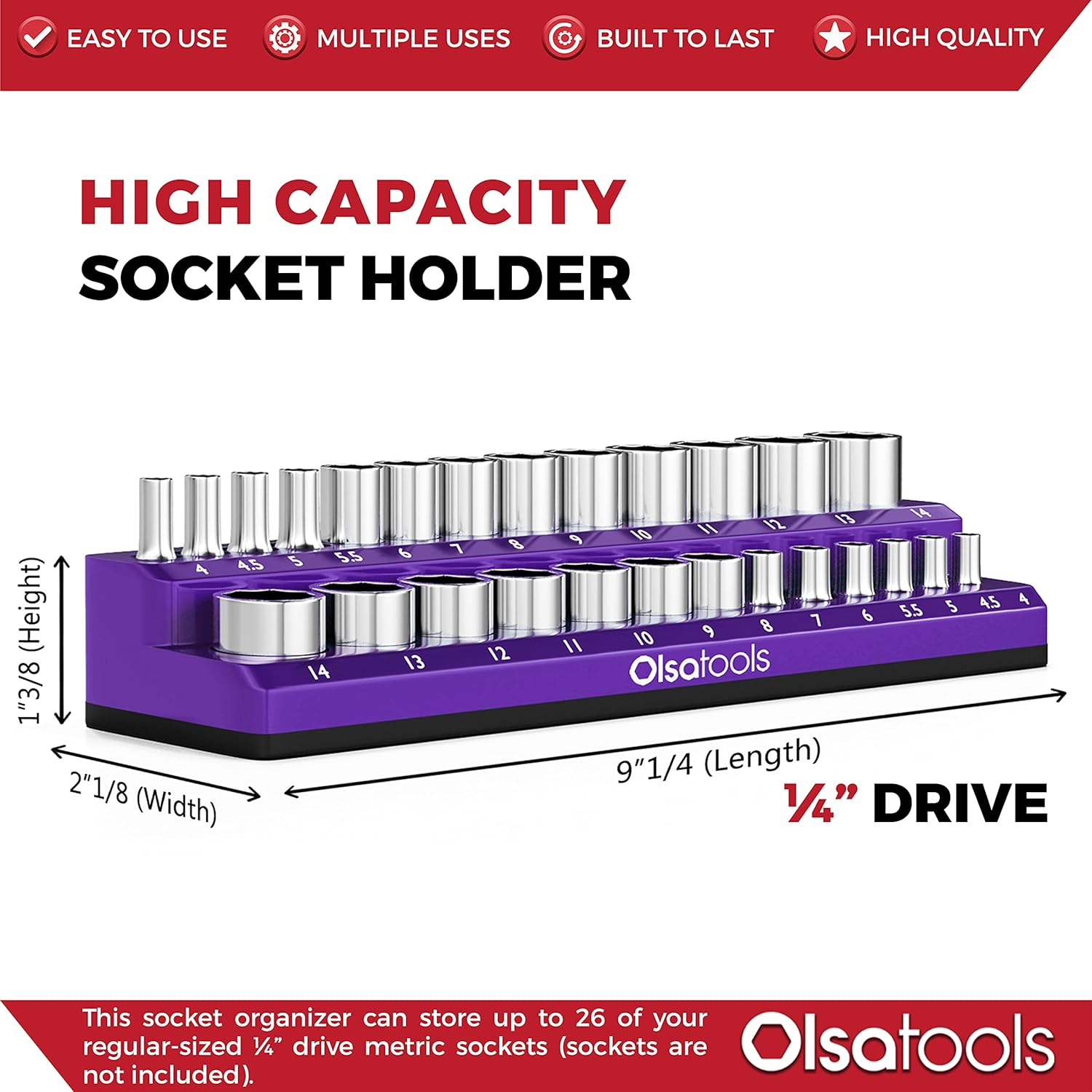 Olsa Tools Magnetic Socket Holder | 1/4-inch Drive | Metric | Purple | Holds 26 Sockets | Professional Quality Tools Organ...