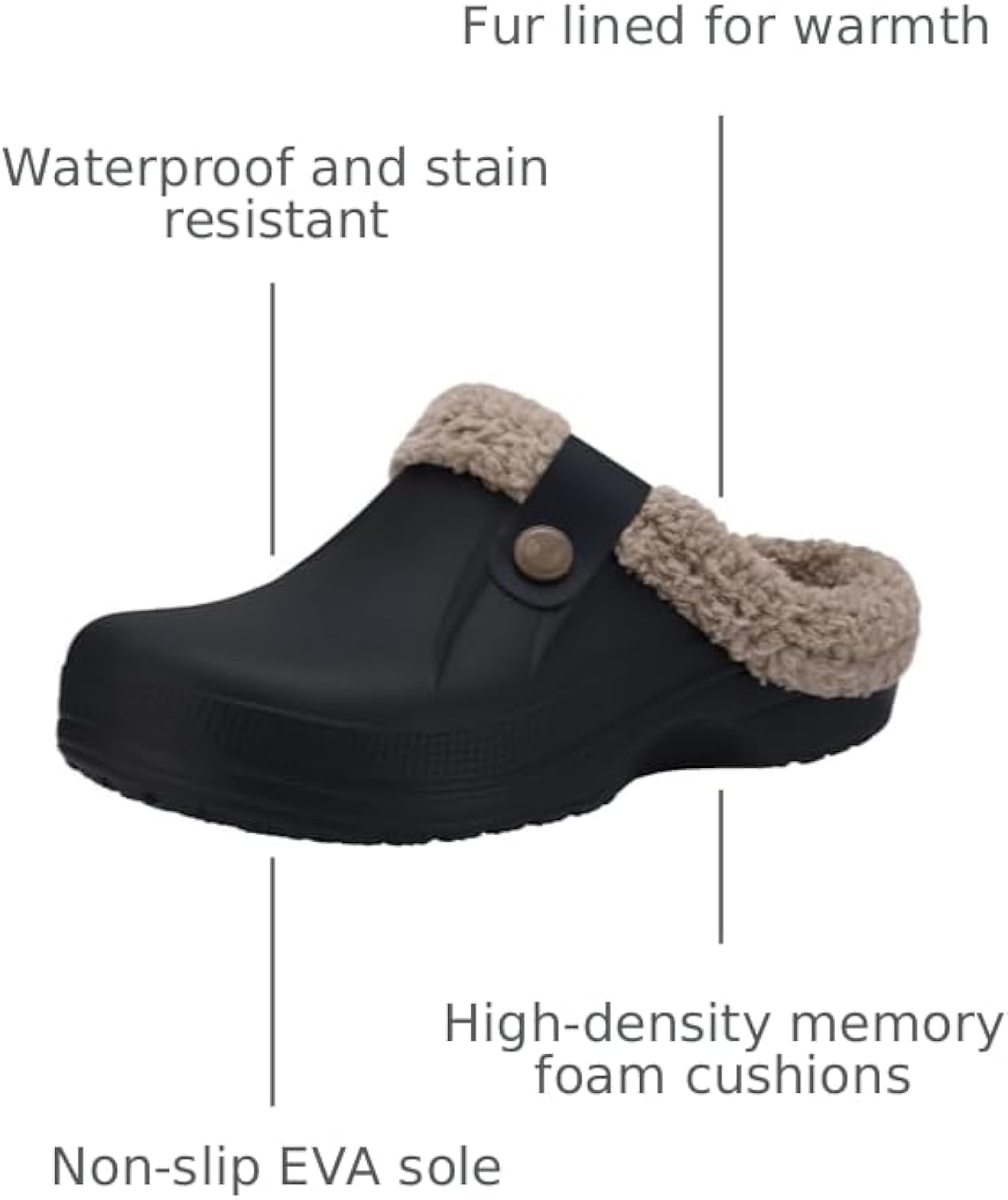 All Day Comfort: Cushions made of high-density memory foam, our cushiony Beslip fuzzy clogs can provide ultra comfort and support all day