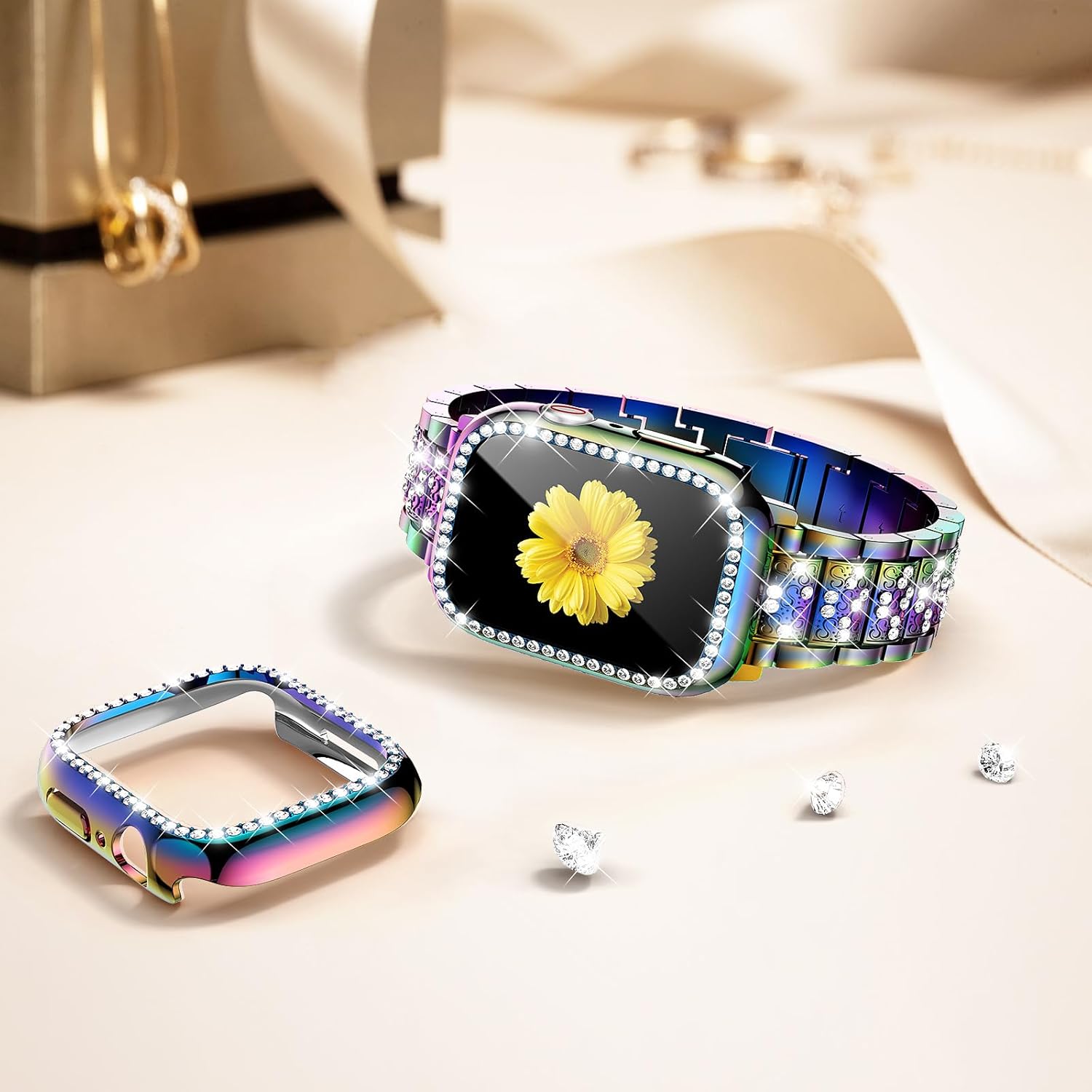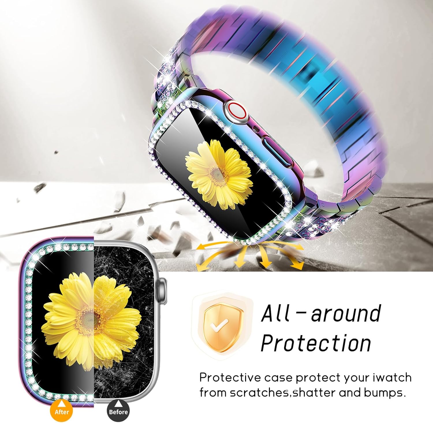 Pretty Design: Set with eye-catching bling crystal, the sparkly metal band will make your watch receive many compliments, as well match up the same attractive bling watch case with Screen Protector, which is the best choice for watch decoration and protection. Note: One of the bling watch case is complimentary gift that Not includes screen protector