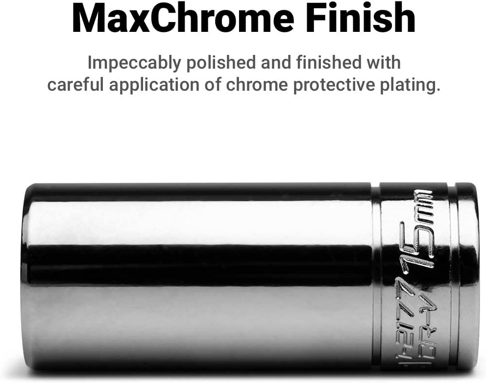 Precise 12-point socket with WaveDrive design grips fasteners more tightly than traditional design, preventing fastener rounding and giving you more leverage