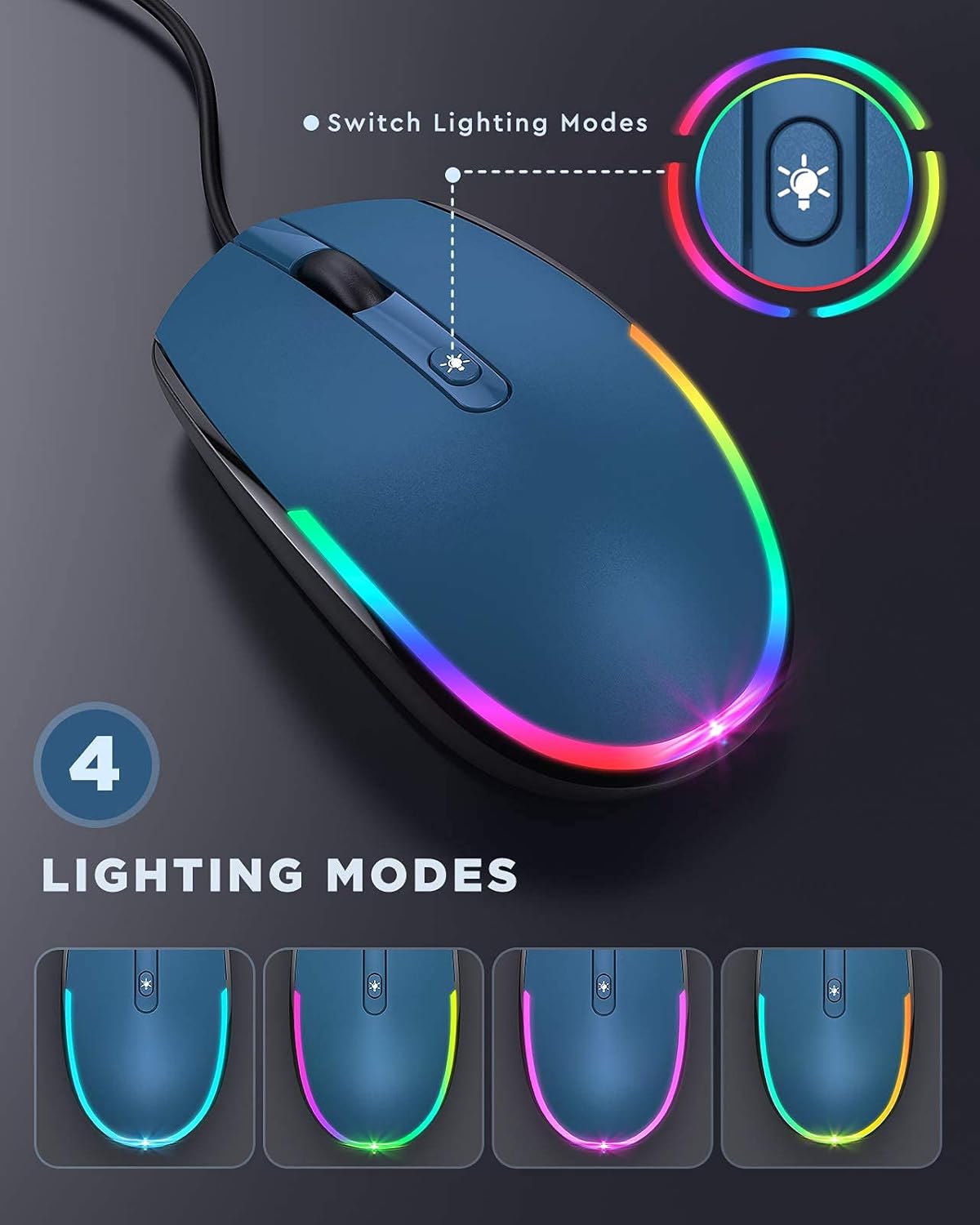 Seenda Wired Mouse - USB Computer Mouse with RGB Backlit Optical LED, Attached USB Cord for Laptops, Notebooks, Chromebook...